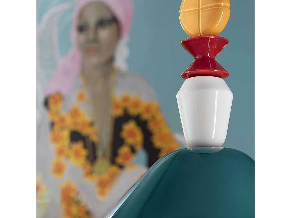 Sospensione Piccola Vintage Decò Lariat Ceramica Verde Petrolio 1 Luce E27