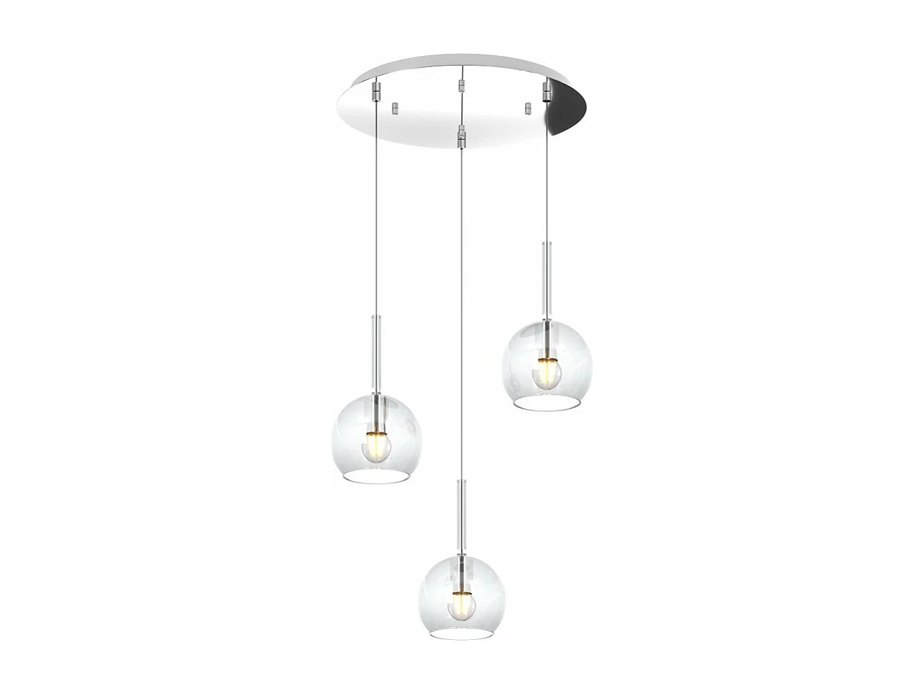 Sosp. Cromo Tonda 3 Luci Vetri Tutti Piccolo Trasparente