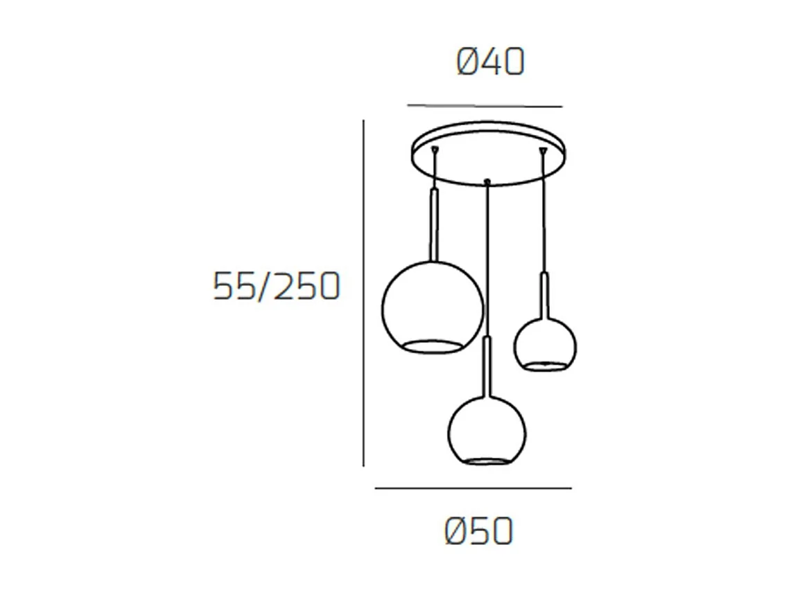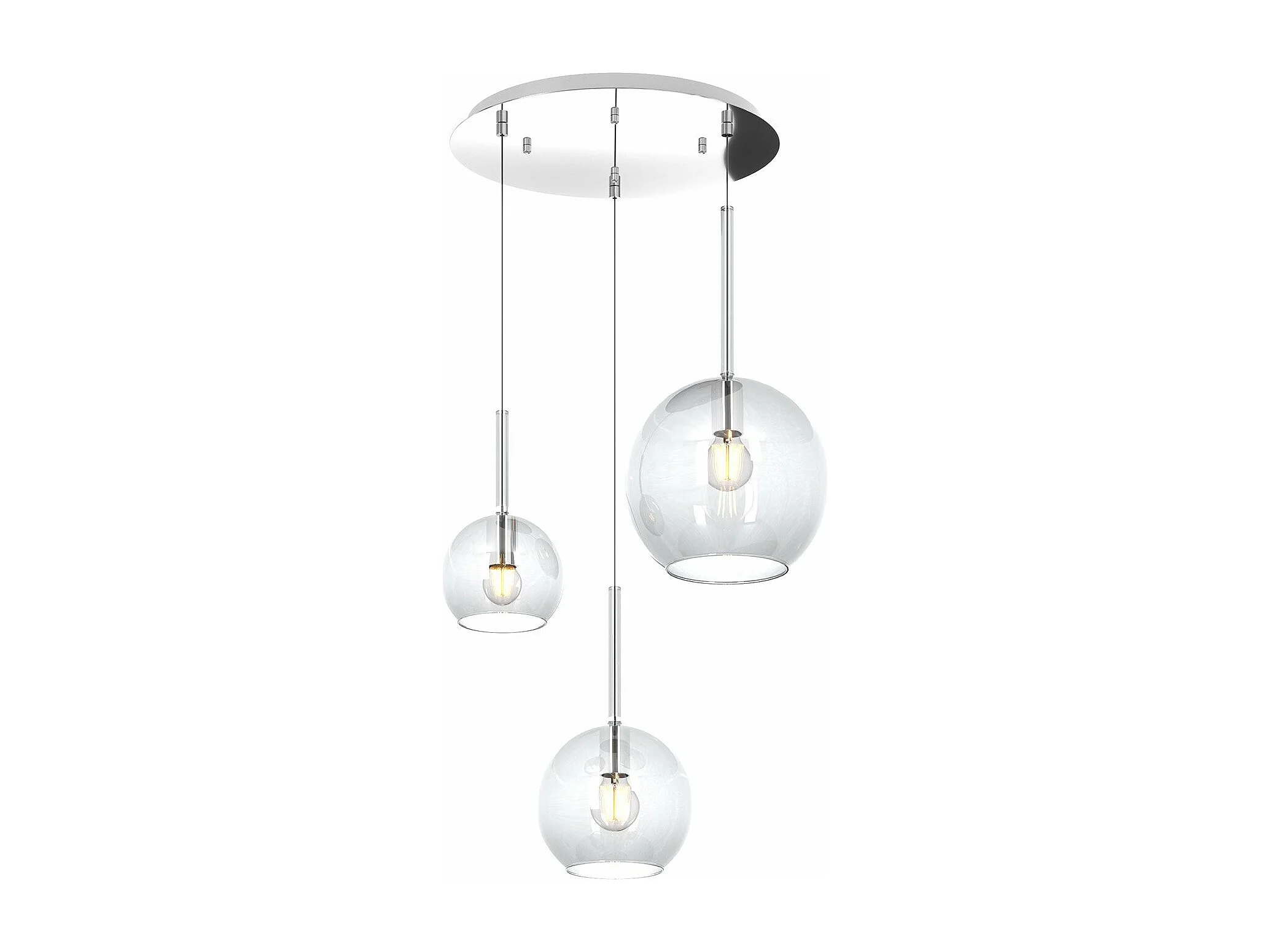 Sosp. Cromo Tonda 3 Luci Vetri (1 Grande+1 Medio+1 Piccolo) Tutti Trasparenti