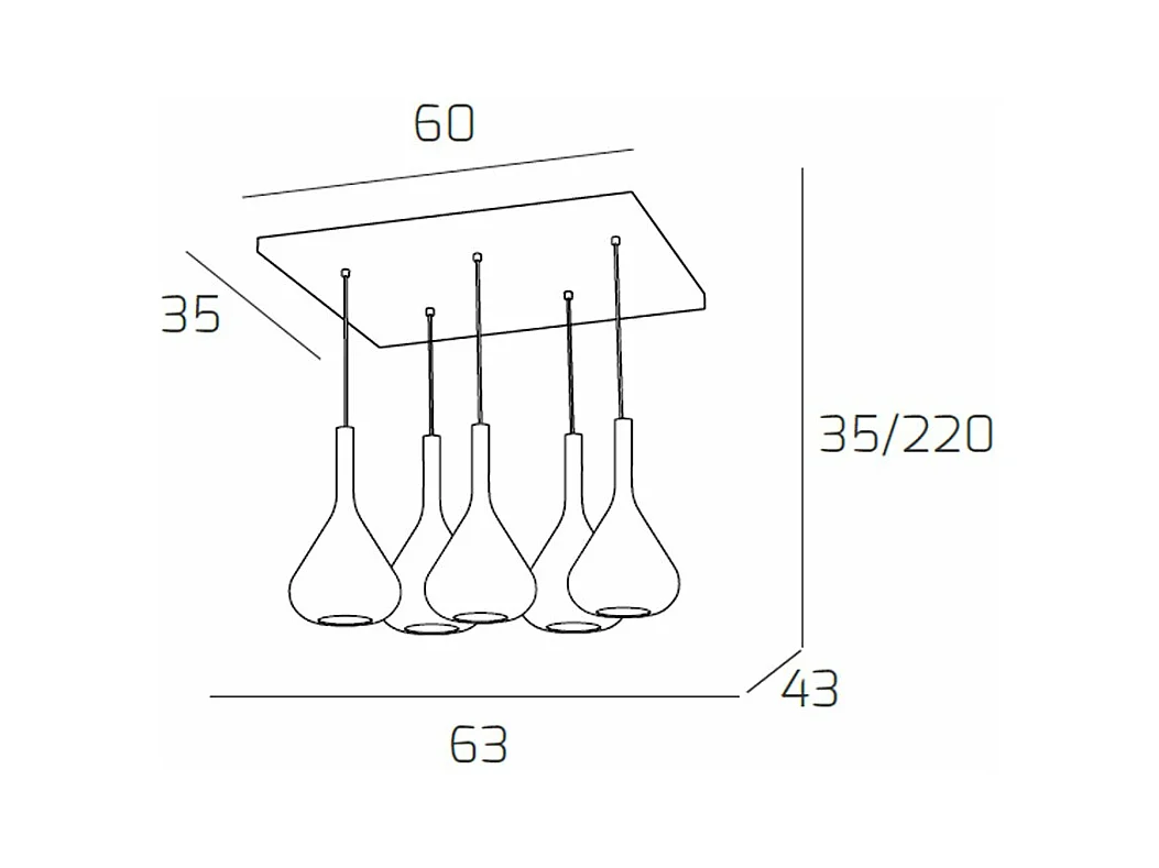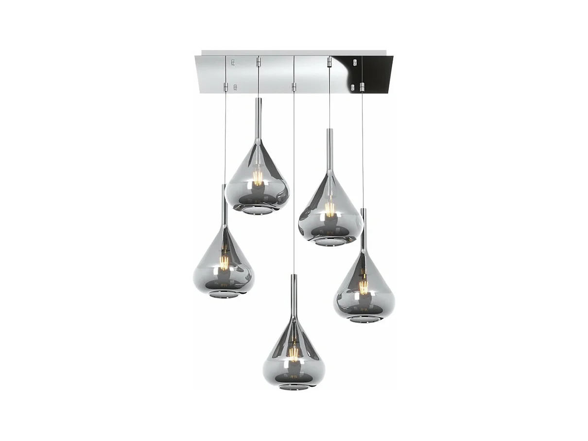 Sospensione Cromo 5 Luci Rettangolare Vetri Fume