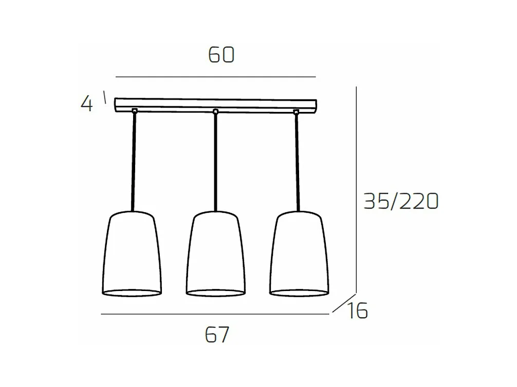Sospensione Cromo Rettangolare 3 Luci Ambra