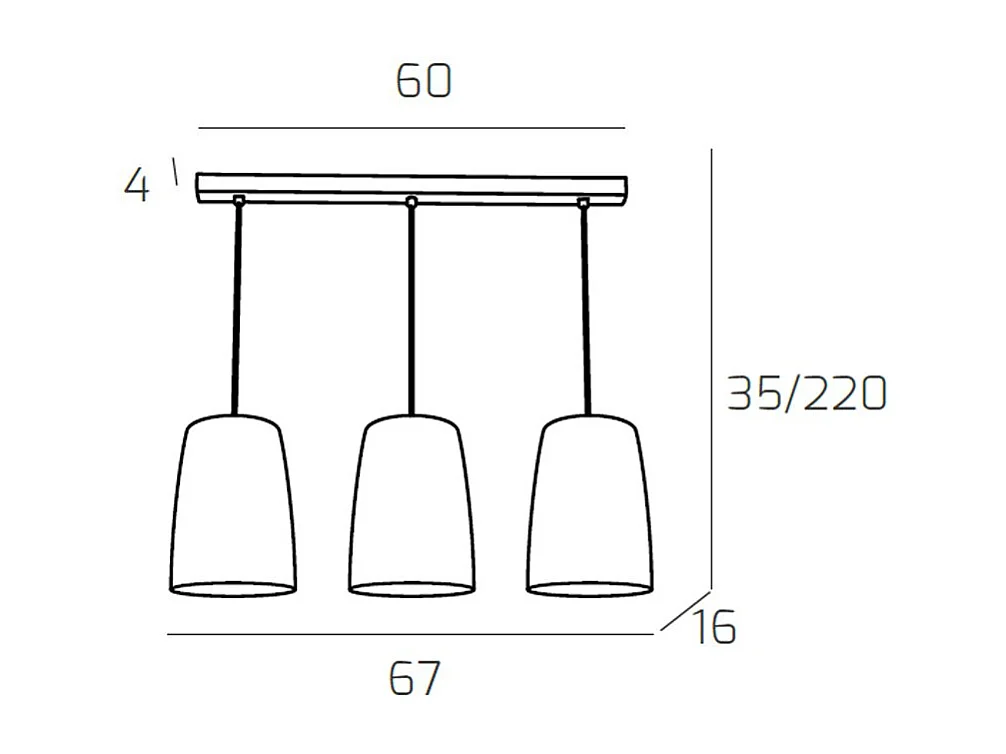 Sospensione Cromo Rettangolare 3 Luci (1 Am+1 Ra+1 Cr)