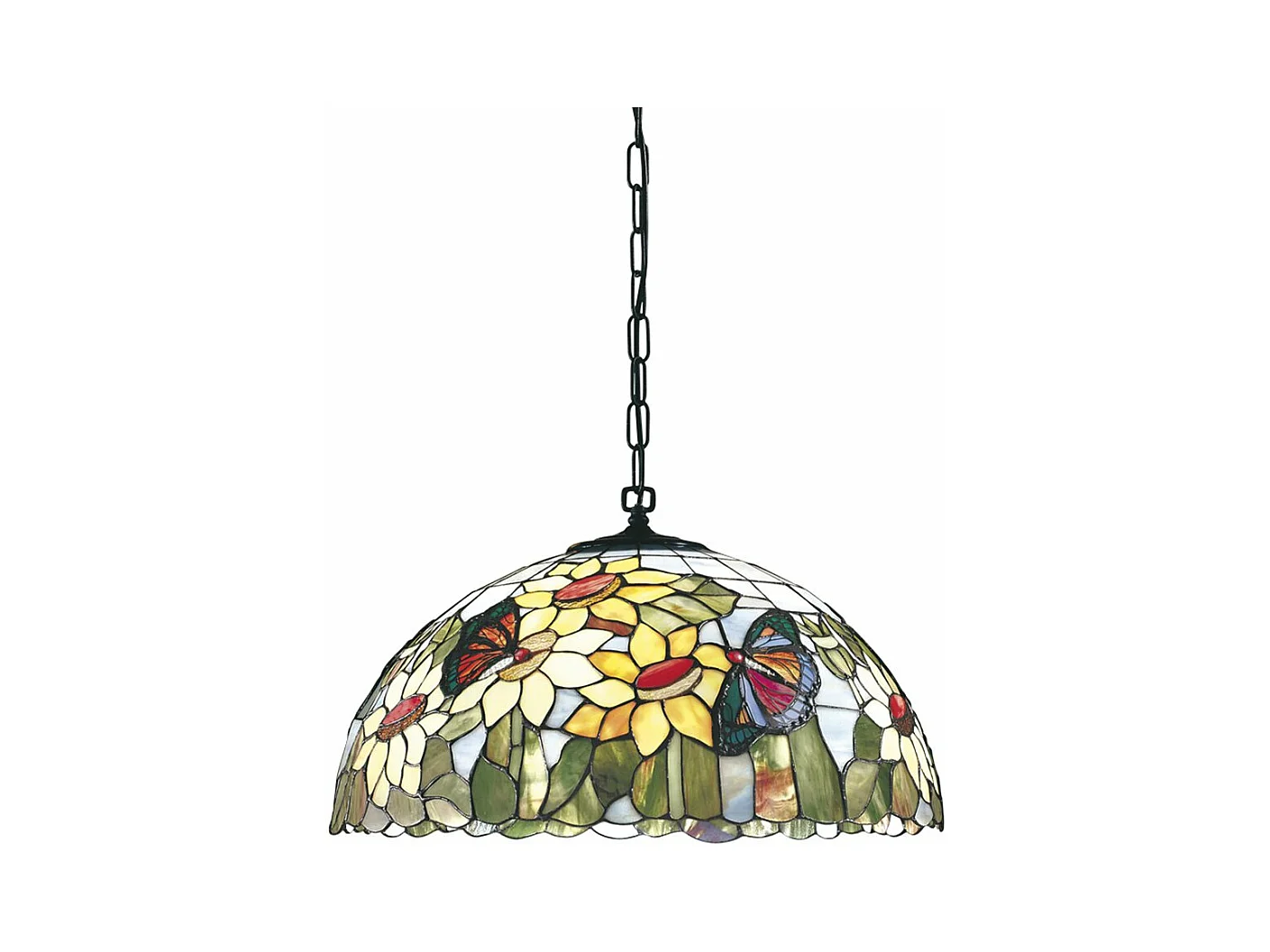 Sospensione Tiffany In Vetro Multicolor Con Catena D.45 Cm