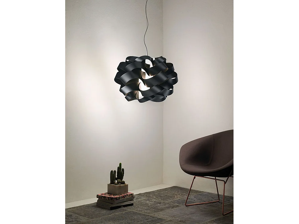 Sospensione Moderna Flat Polilux ® Nero E Metallo Cromo 1 Luce E14