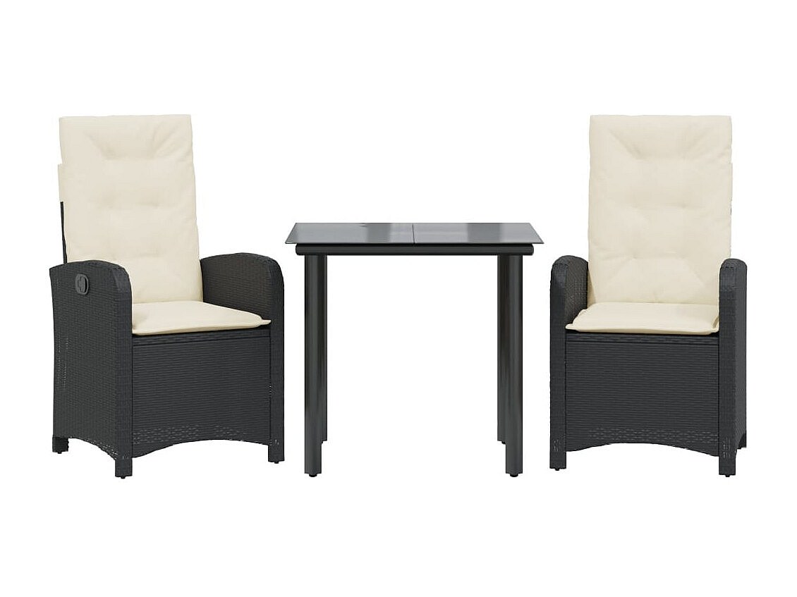Necdet Set comedor de jardín 3 pzas con cojines ratán sintético negro