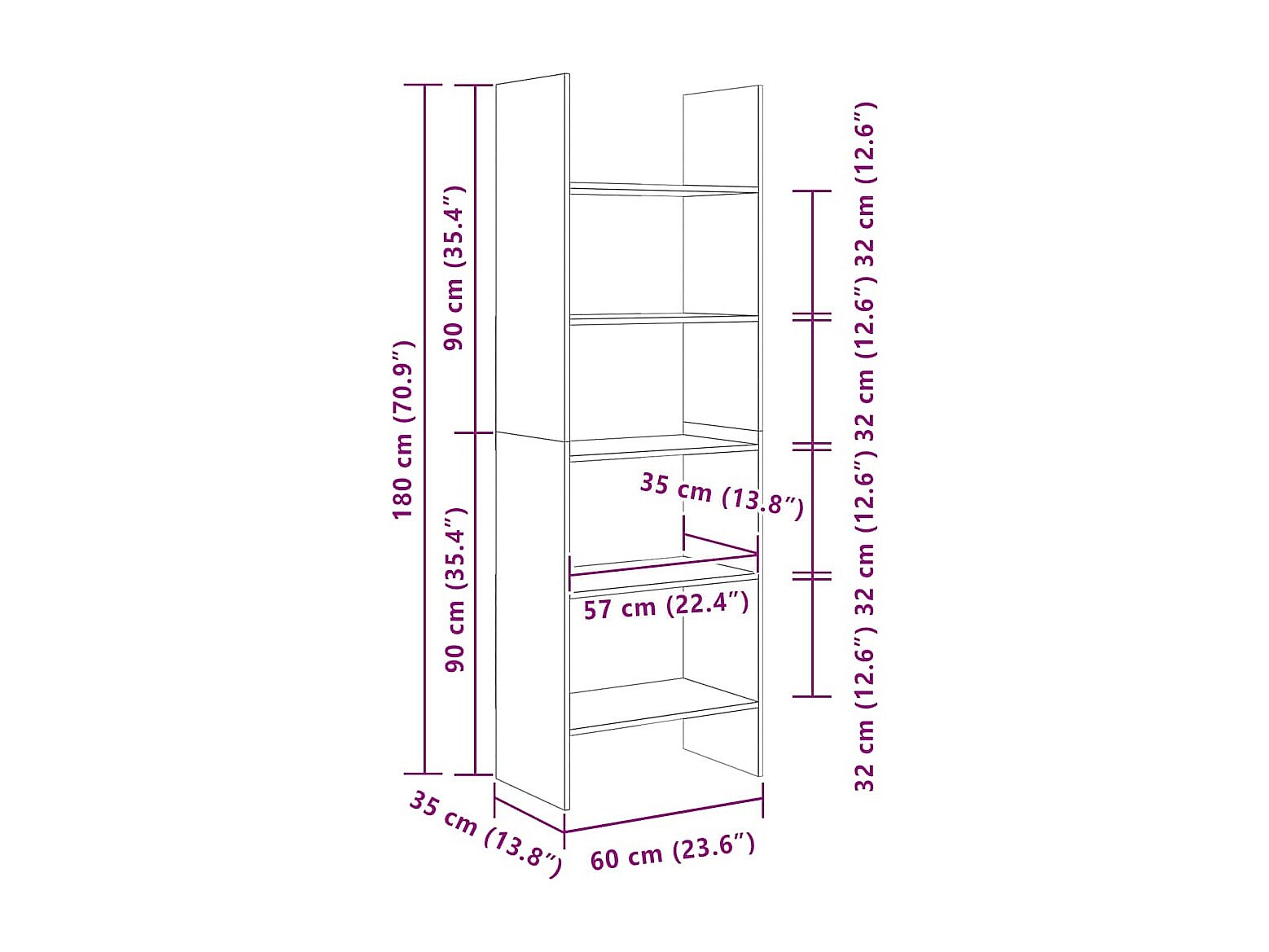 Syron Estantería madera contrachapada color roble Sonoma 60x35x180 cm