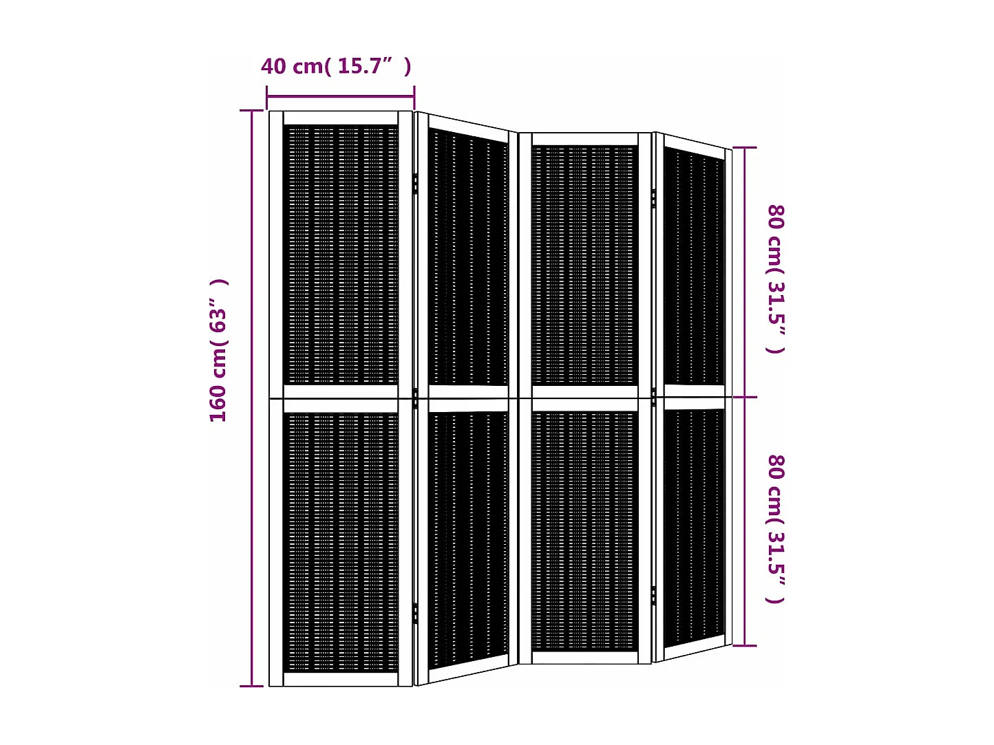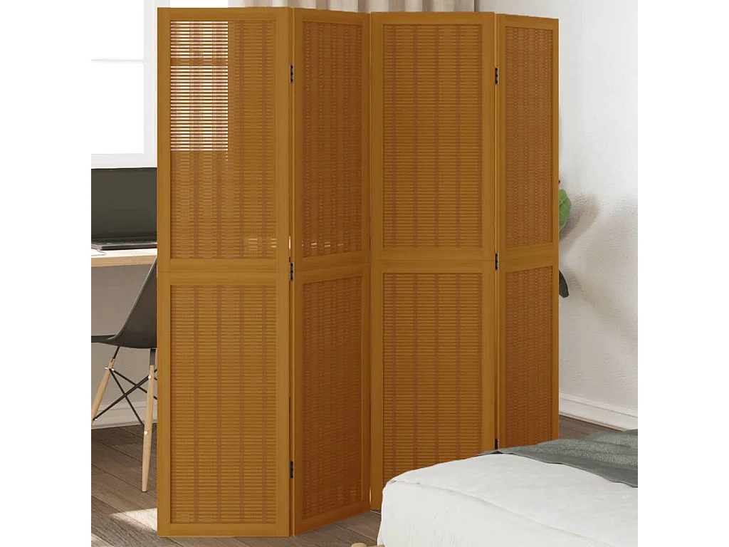 Tabique 4 paneles marrón madera maciza de paulownia