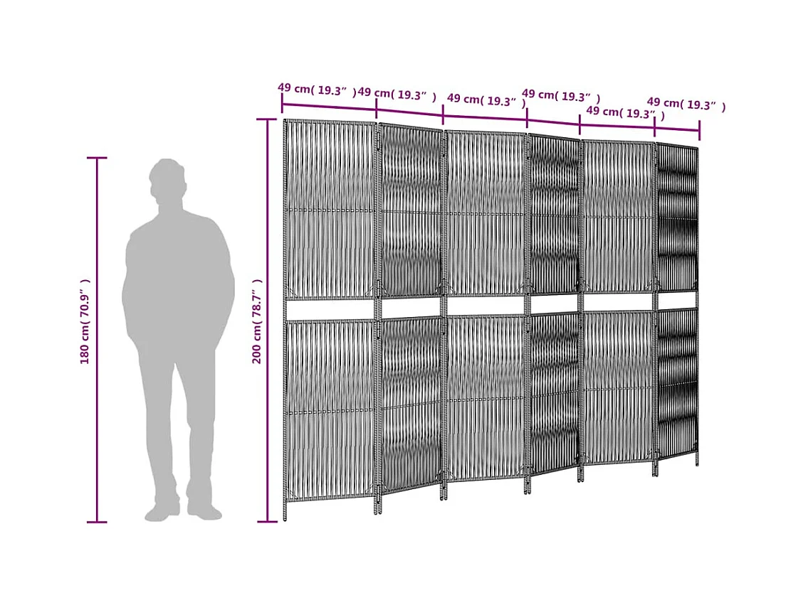 Tabique plegable 6 paneles 240 cm Bambú y lona