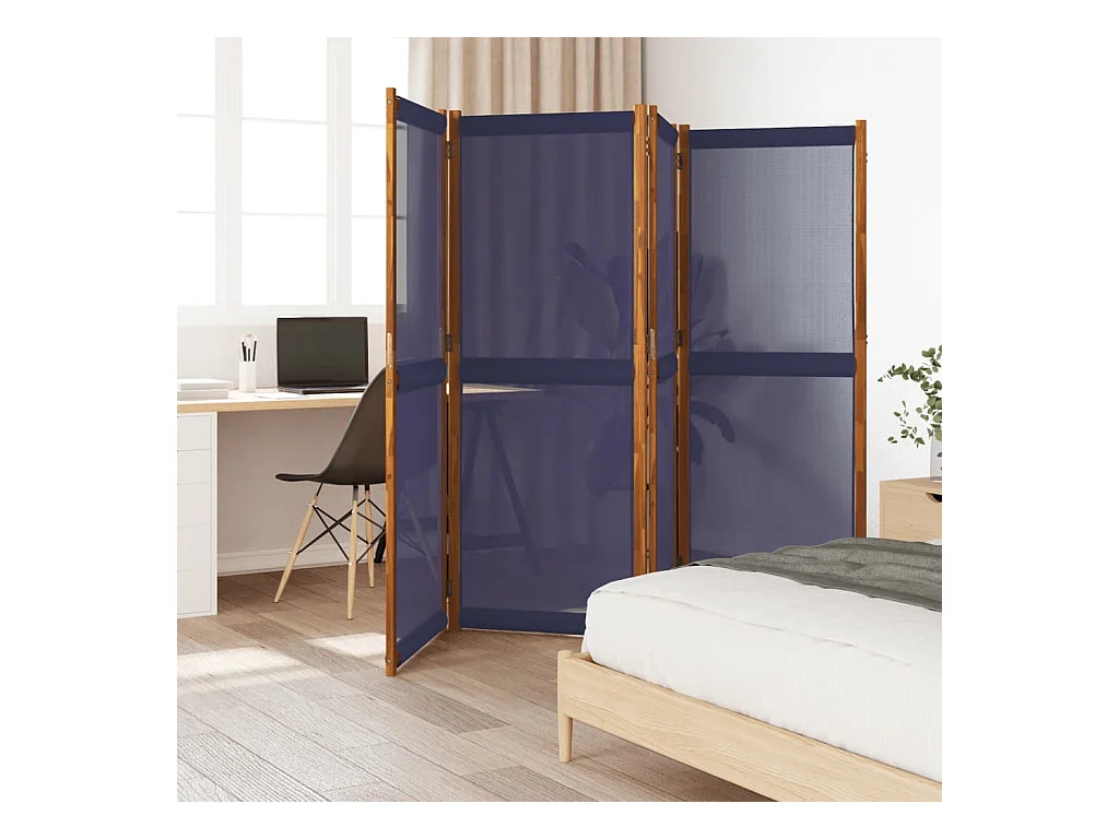 Biombo divisor de 4 paneles azul oscuro 280x180 cm ES345829