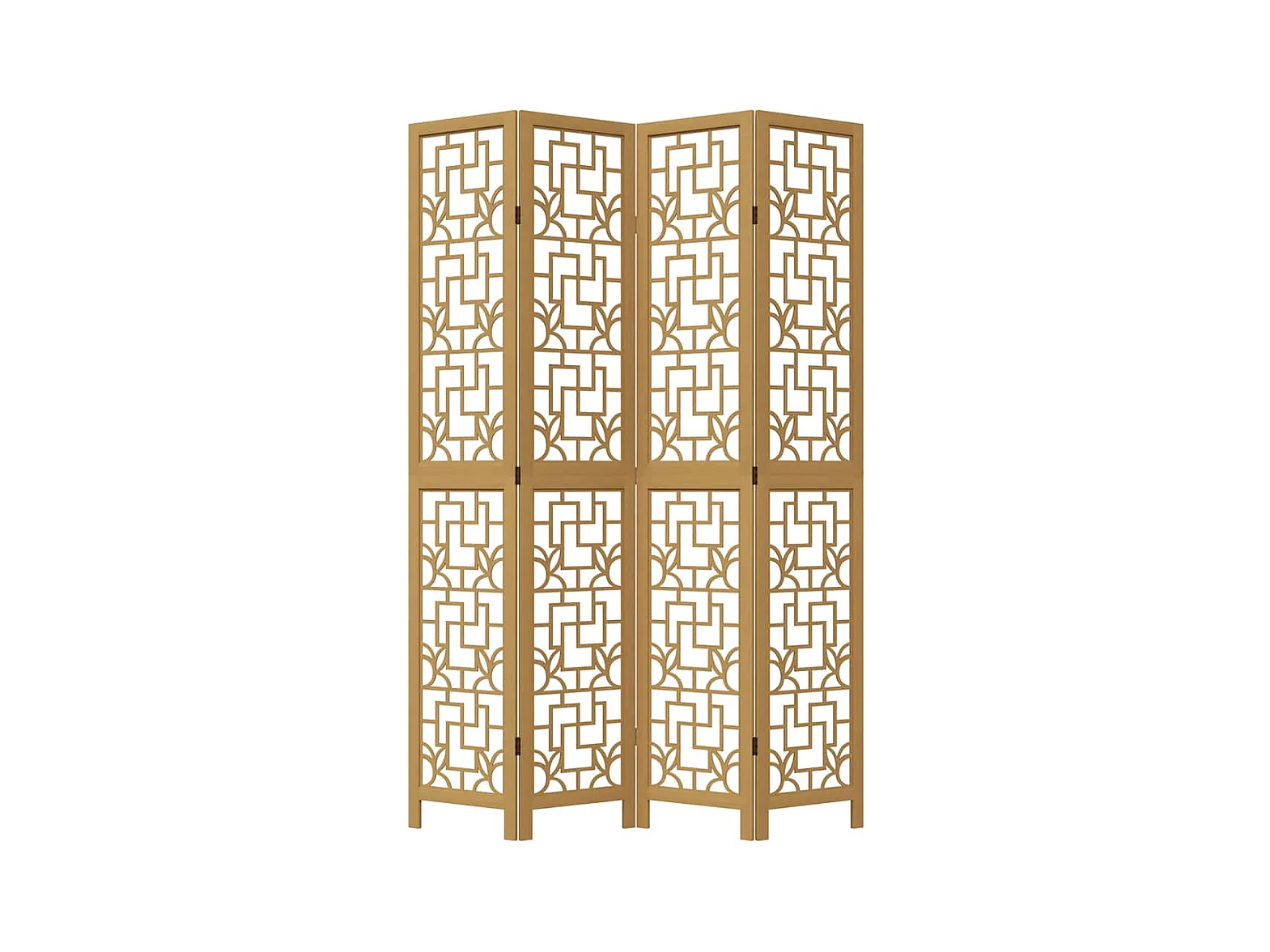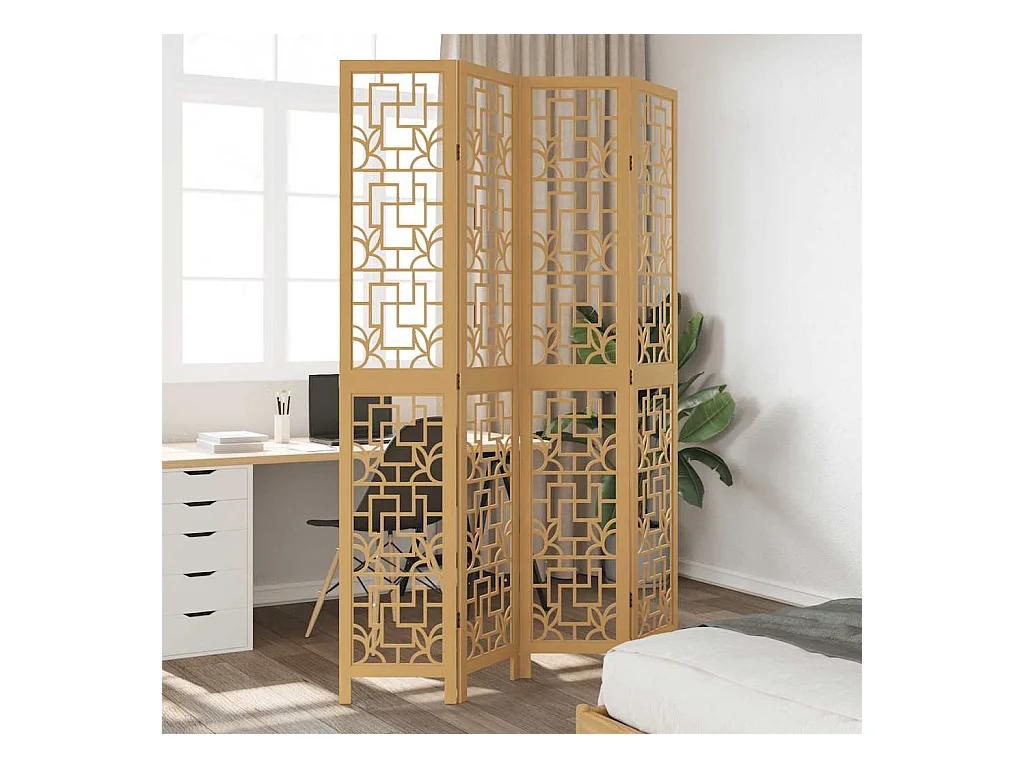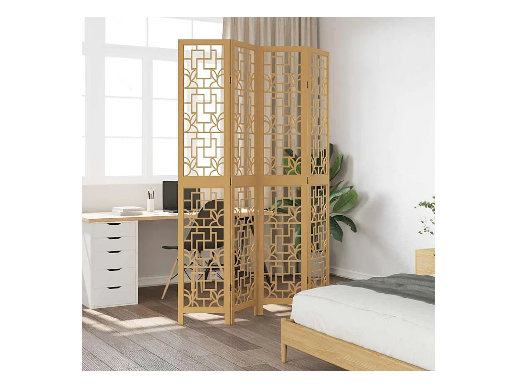 Tabique divisorio de 4 paneles en madera maciza de paulownia marrón
