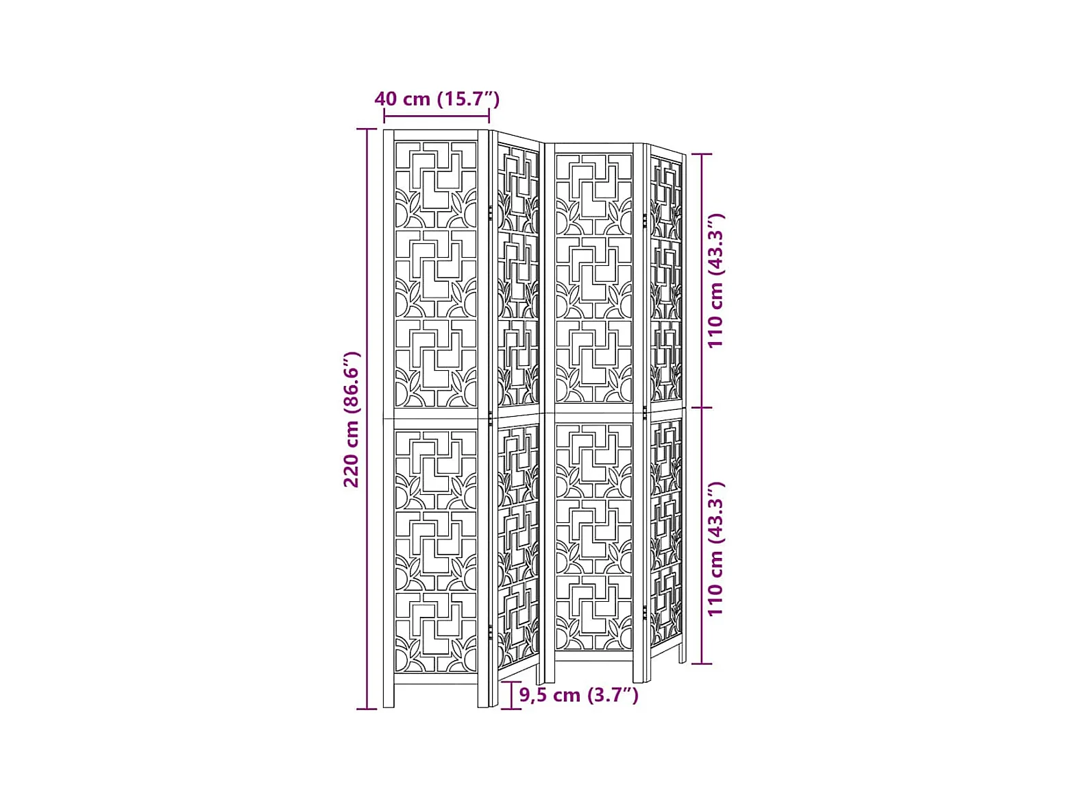 Tabique divisorio de 4 paneles de paulownia maciza en color marrón oscuro