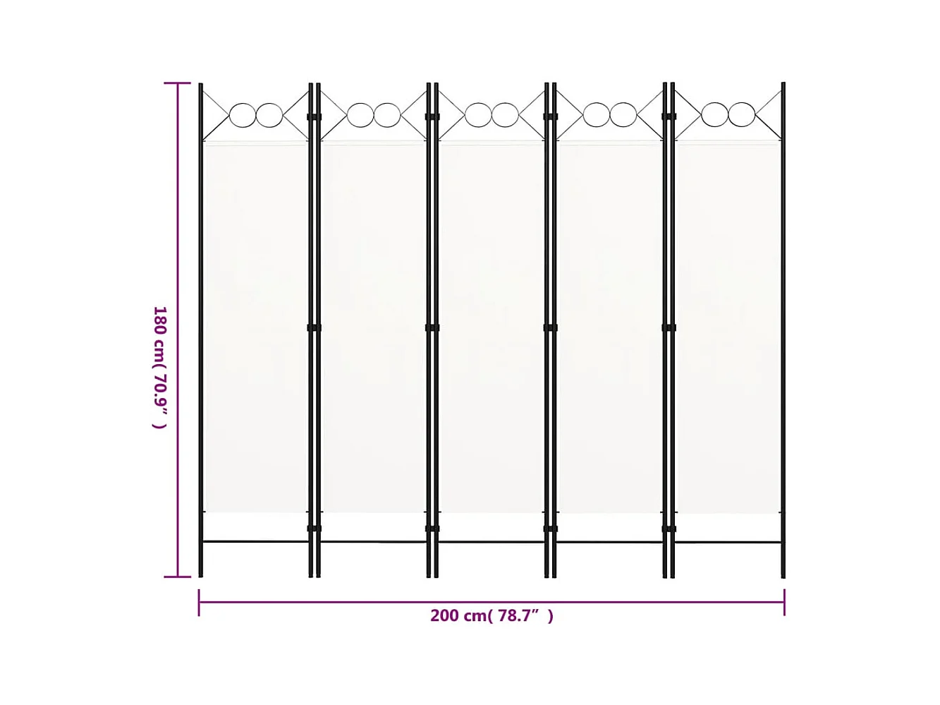 Mampara divisoria de 5 paneles Tela Blanca 433x180 cm