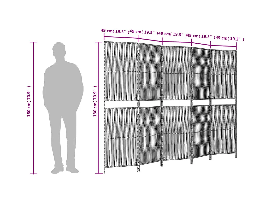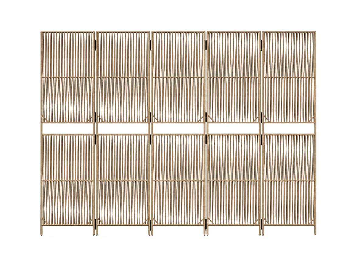 Tabique divisorio de 5 paneles de mimbre de resina beige