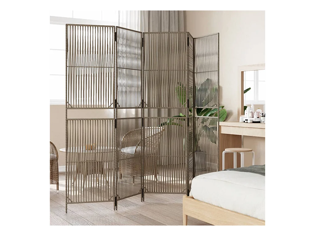 Tabique divisorio de mimbre de resina gris de 4 paneles