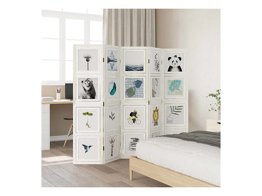 Tabique divisorio de 5 paneles en madera maciza de paulownia blanca