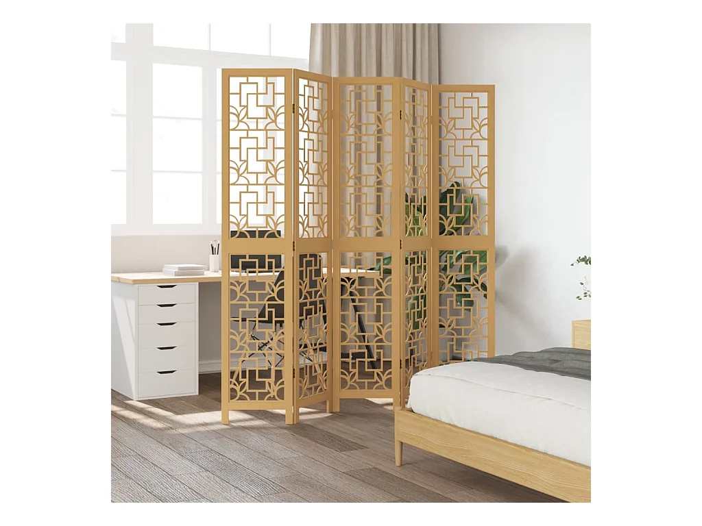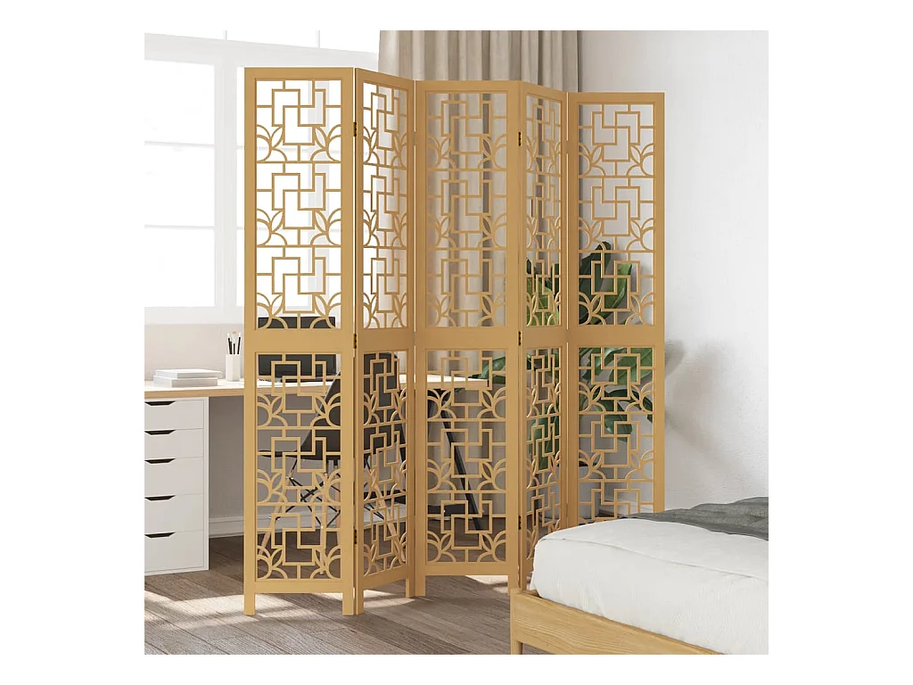 Tabique divisorio de 5 paneles en madera maciza de paulownia marrón
