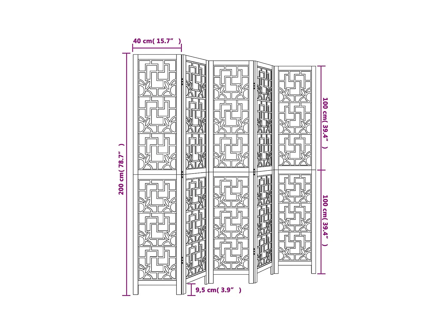 Tabique divisorio de 5 paneles en marrón oscuro fabricado en paulownia maciza