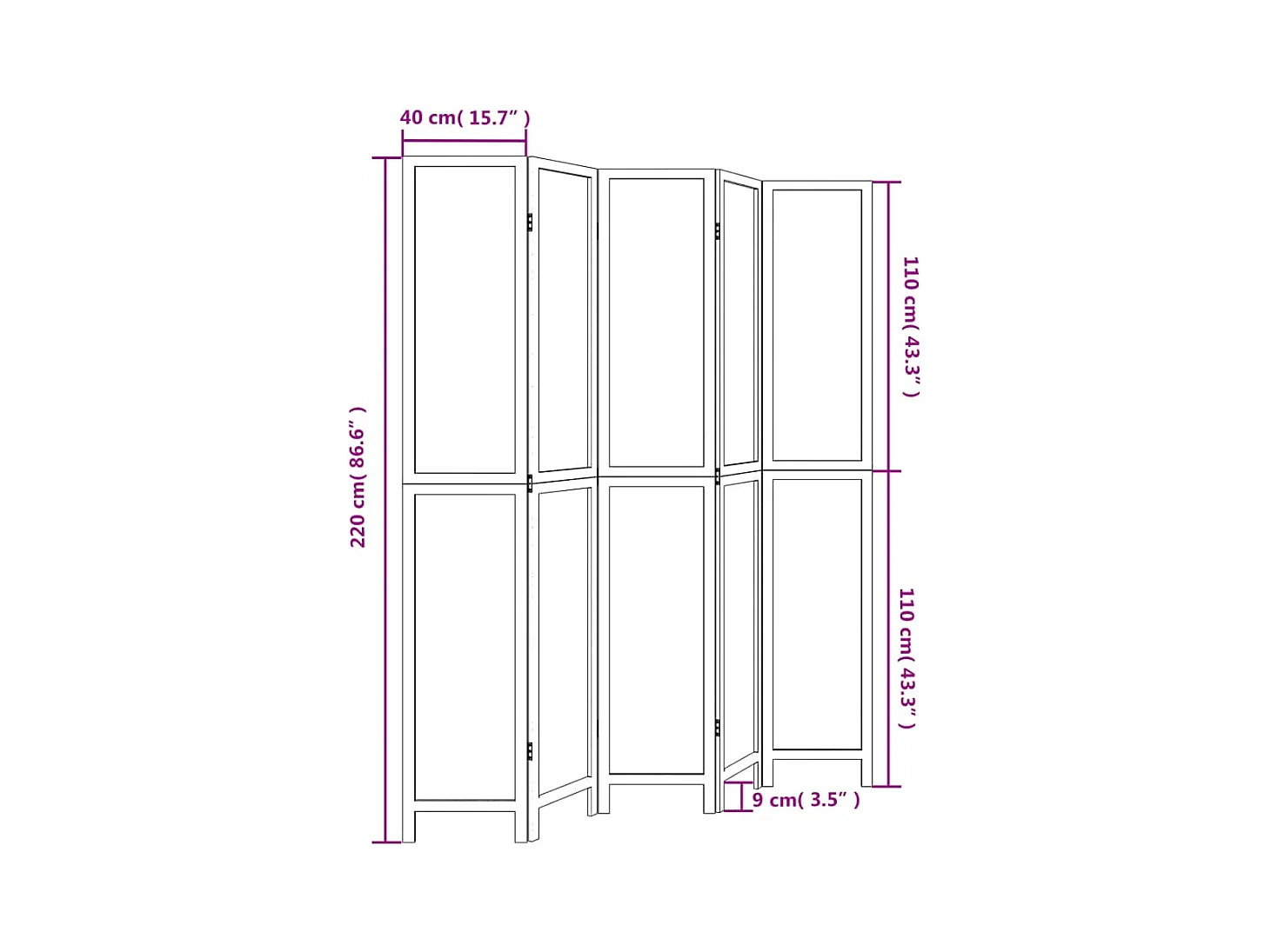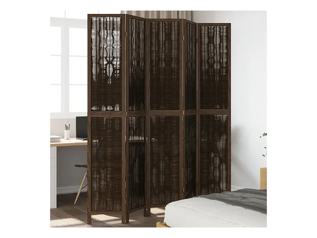 Tabique divisorio de 5 paneles en marrón oscuro fabricado en paulownia maciza