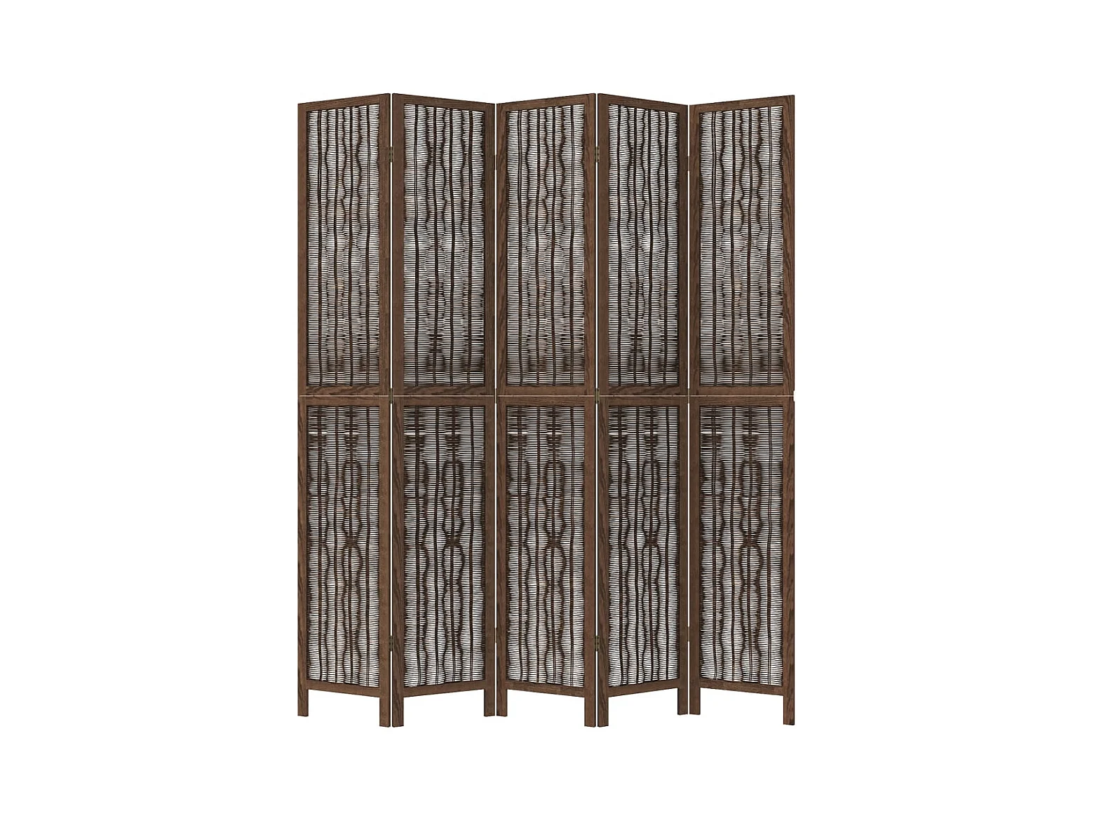 Tabique divisorio de 5 paneles en madera maciza de paulownia marrón
