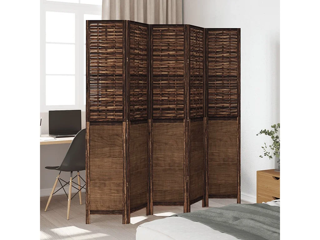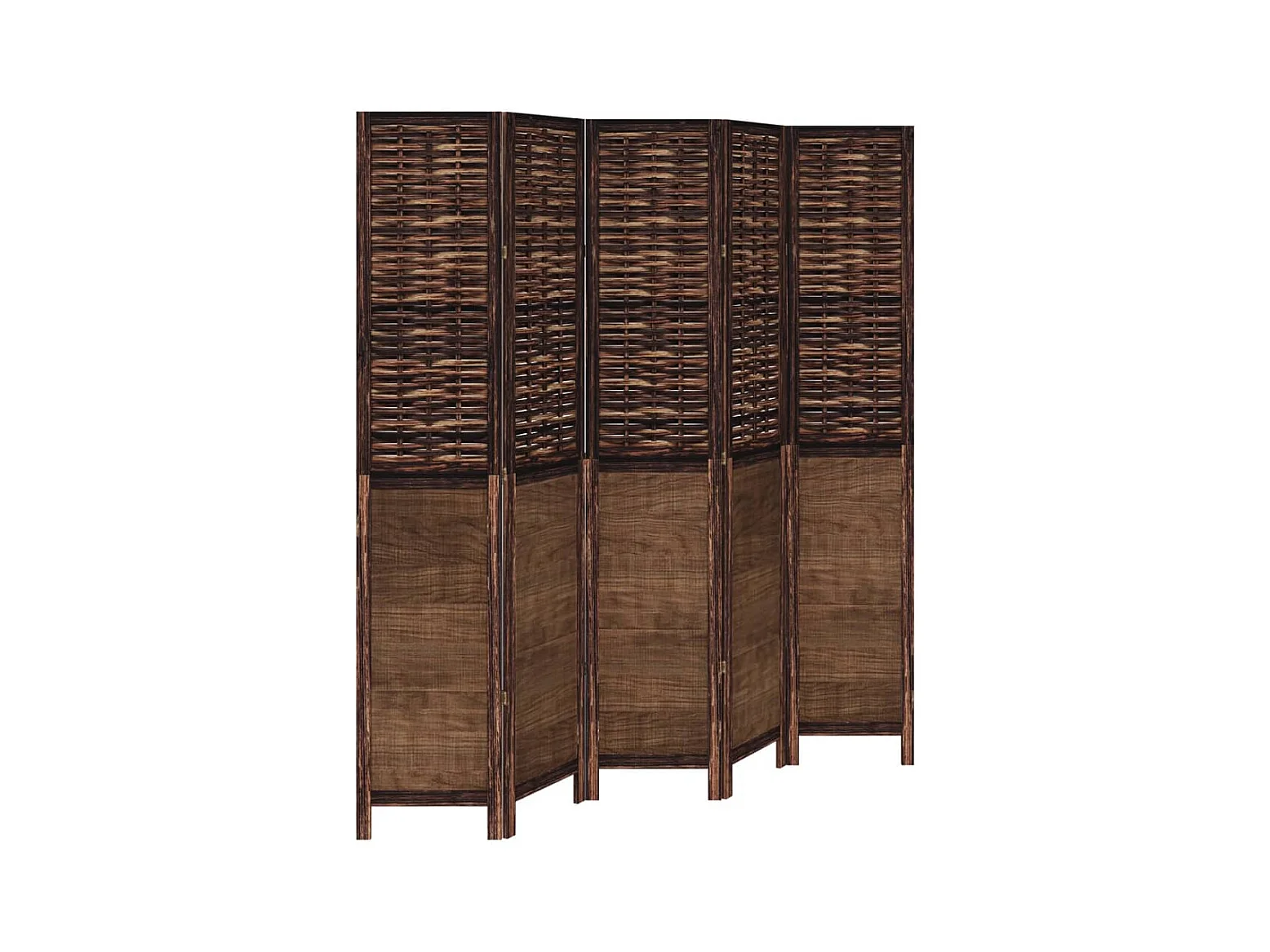 Tabique divisorio de 5 paneles de mimbre de resina marrón