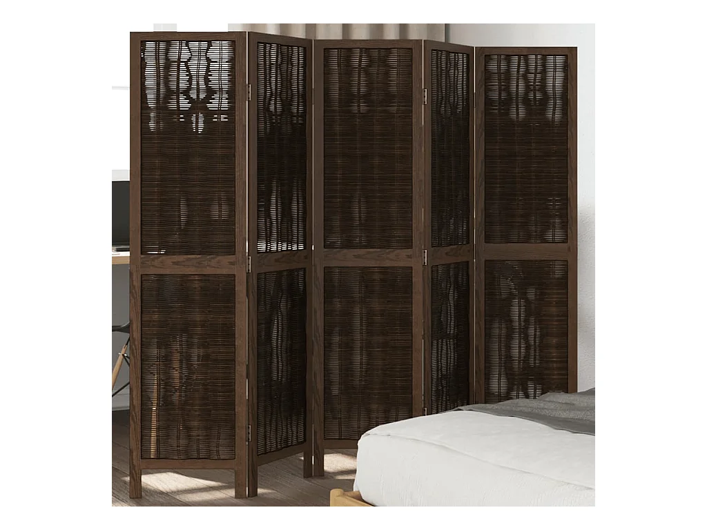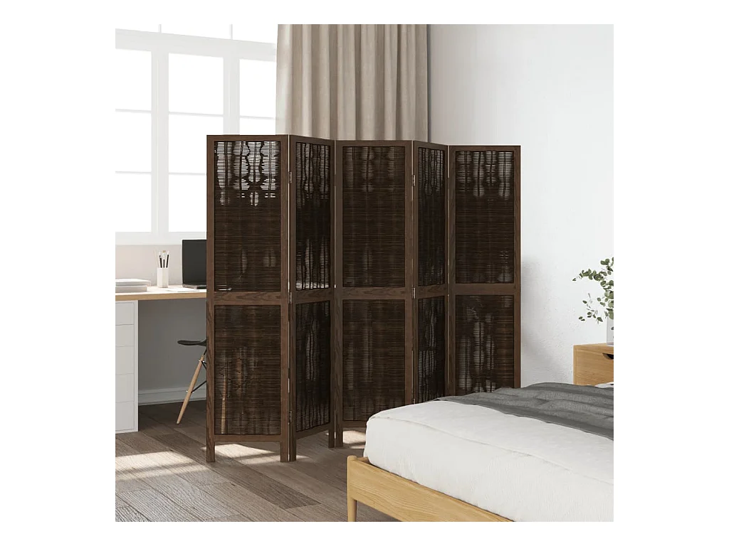 Tabique divisorio de 5 paneles en marrón oscuro fabricado en paulownia maciza