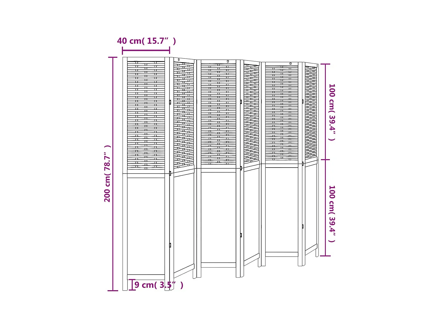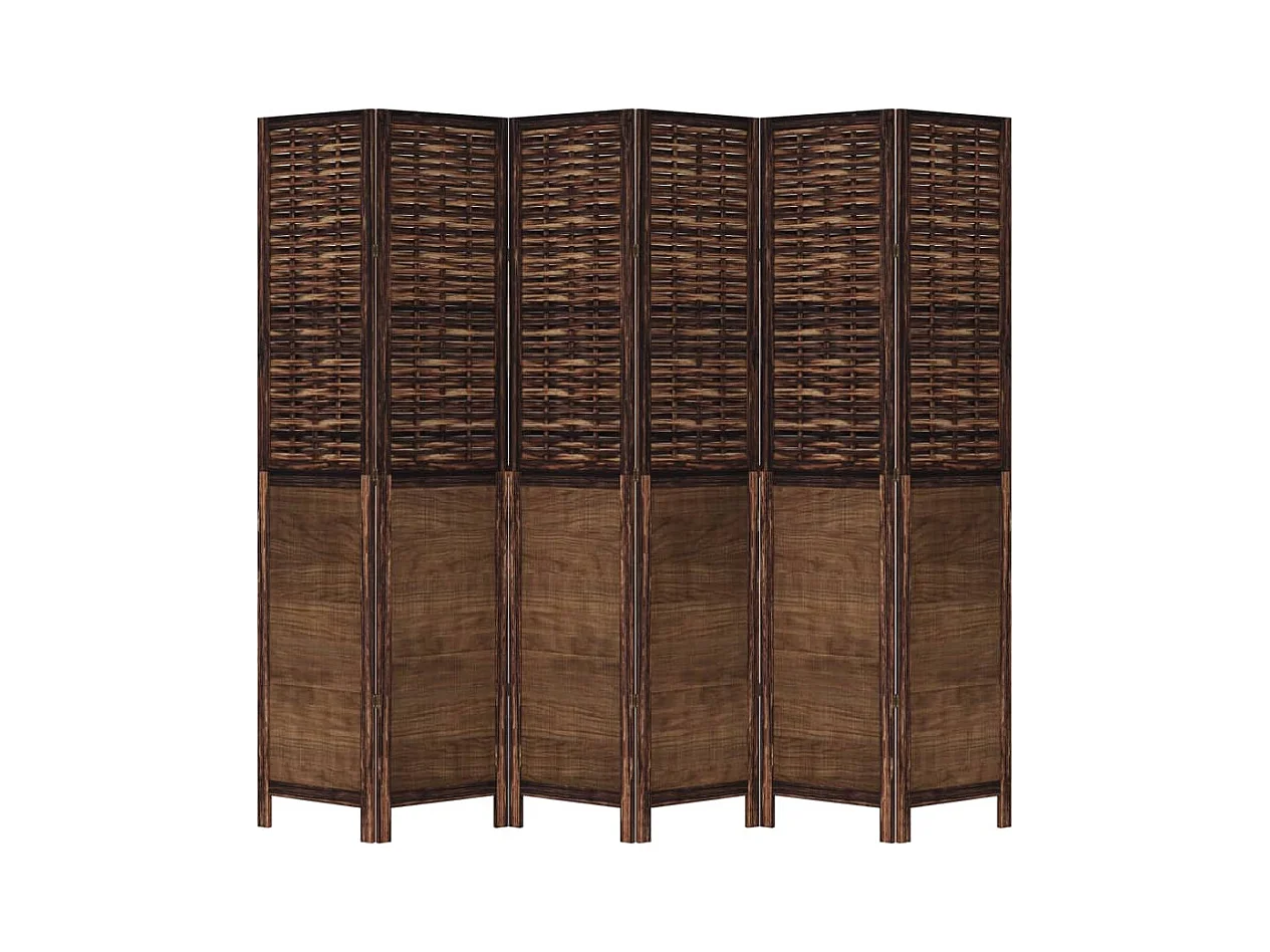 Tabique divisorio de mimbre de resina marrón de 6 paneles