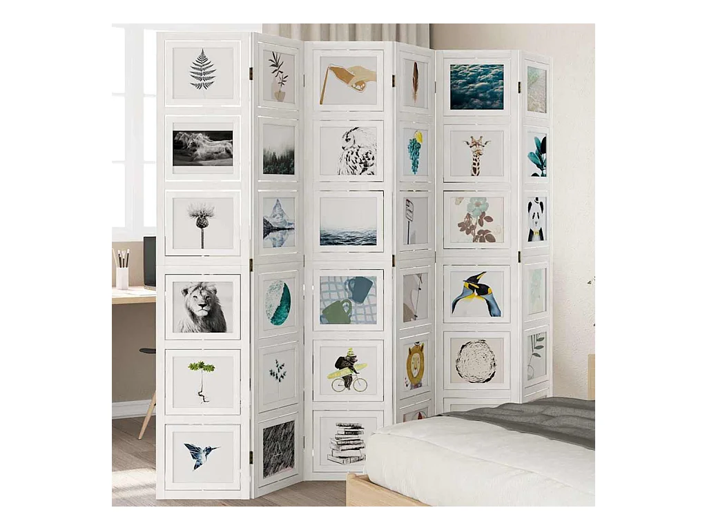 Tabique divisorio de 6 paneles en madera maciza de paulownia blanca