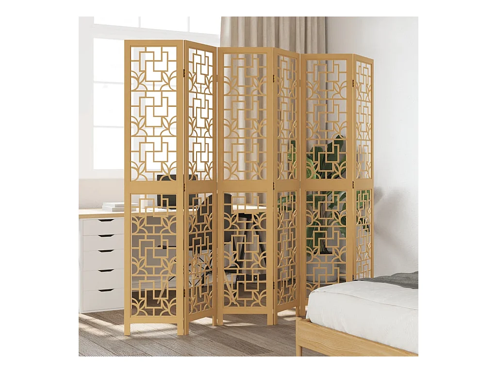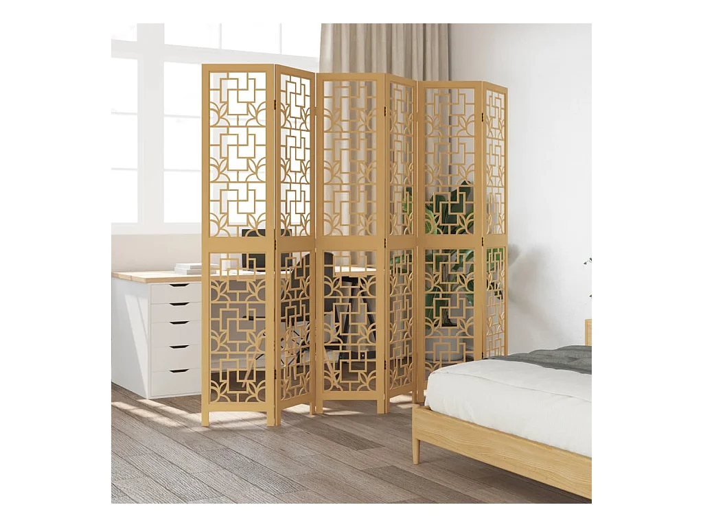Tabique divisorio de 6 paneles en madera maciza de paulownia marrón