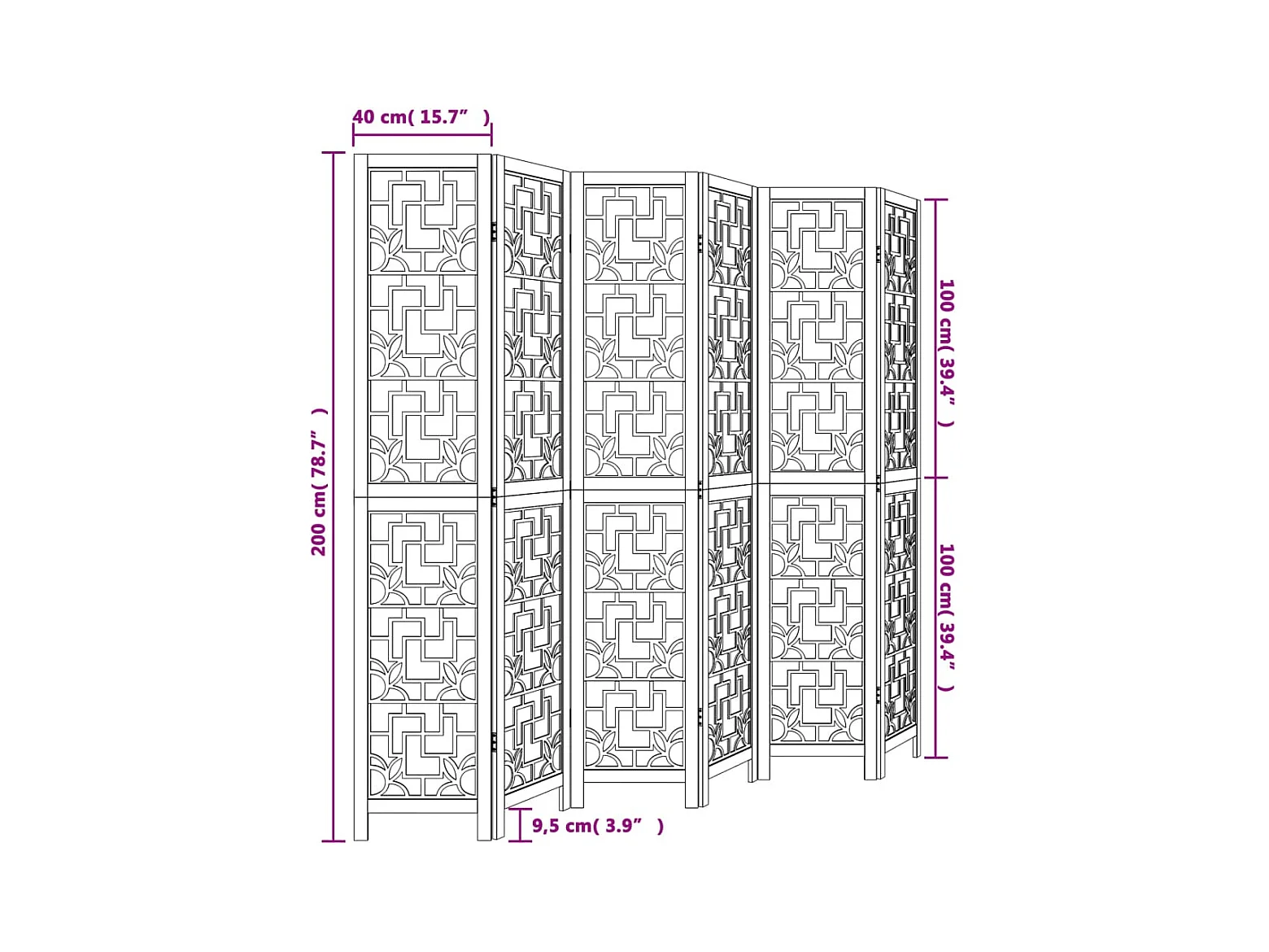 Tabique divisorio de 5 paneles en madera maciza de paulownia marrón