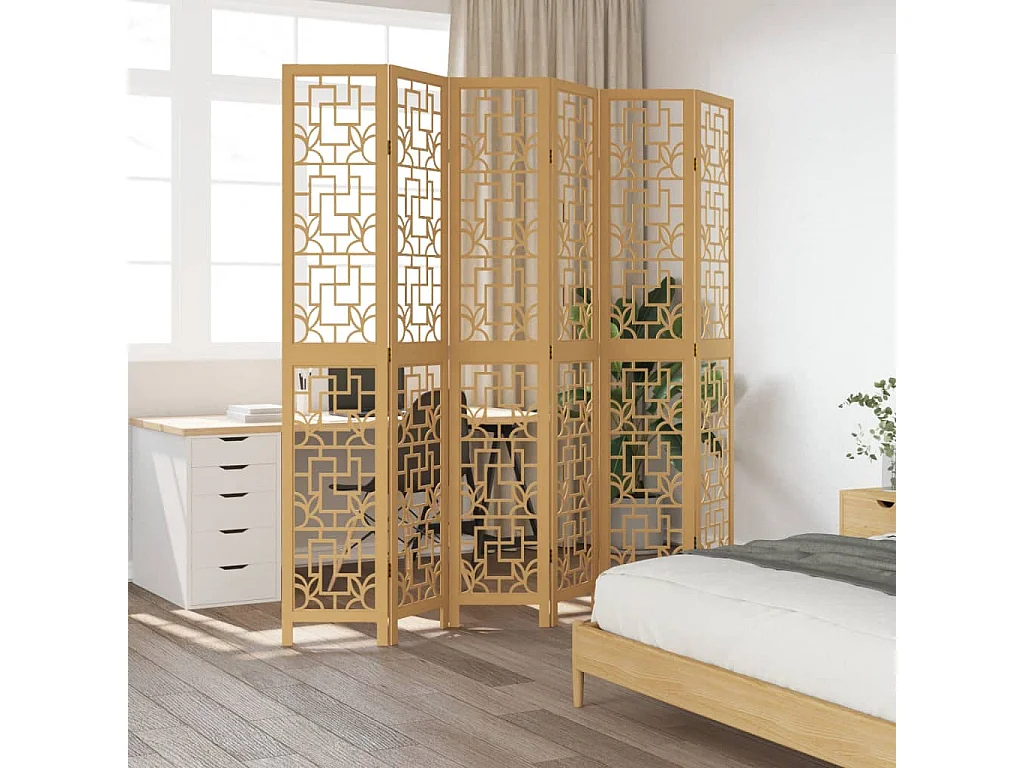 Tabique divisorio de 6 paneles en madera maciza de paulownia marrón