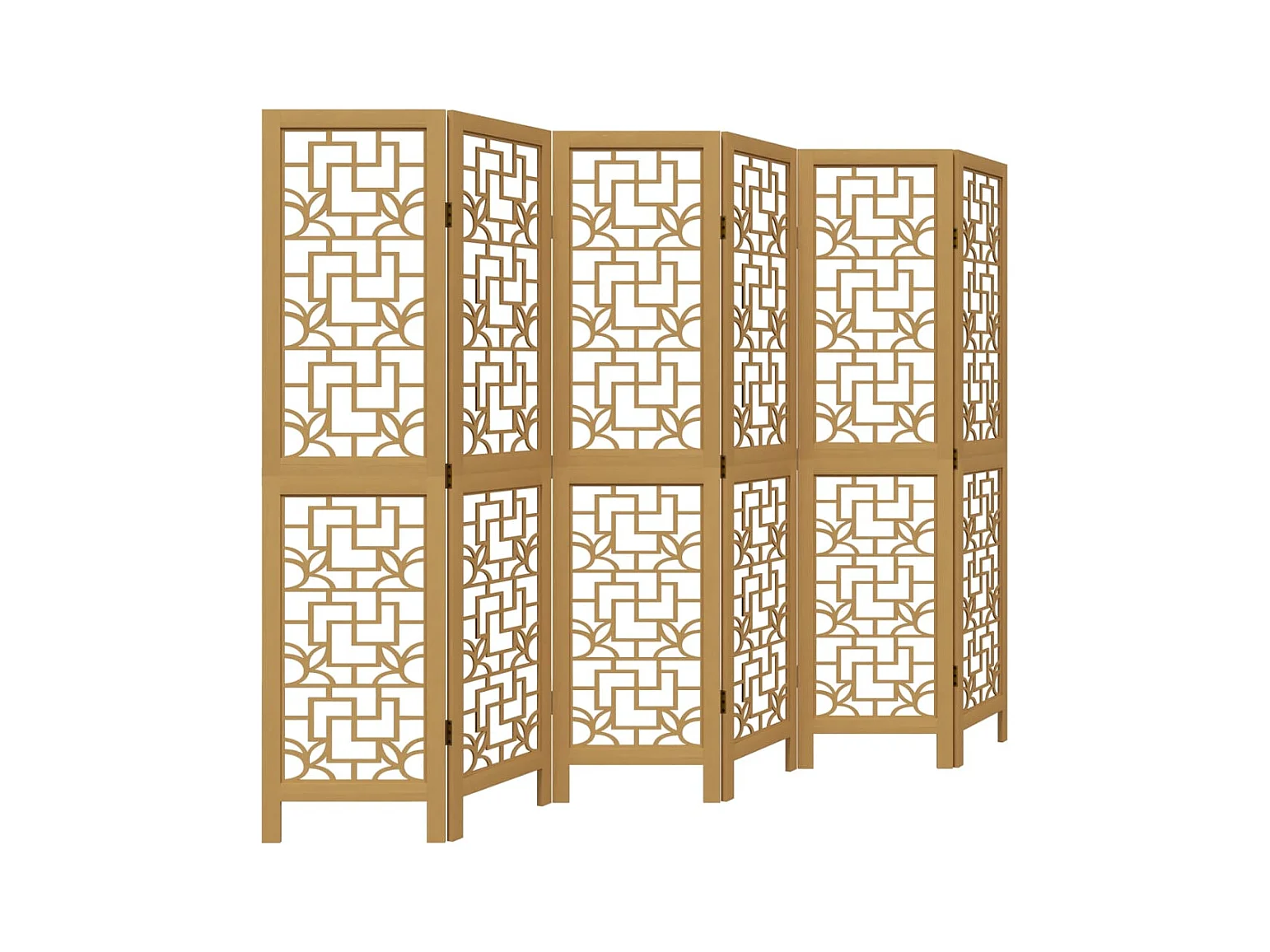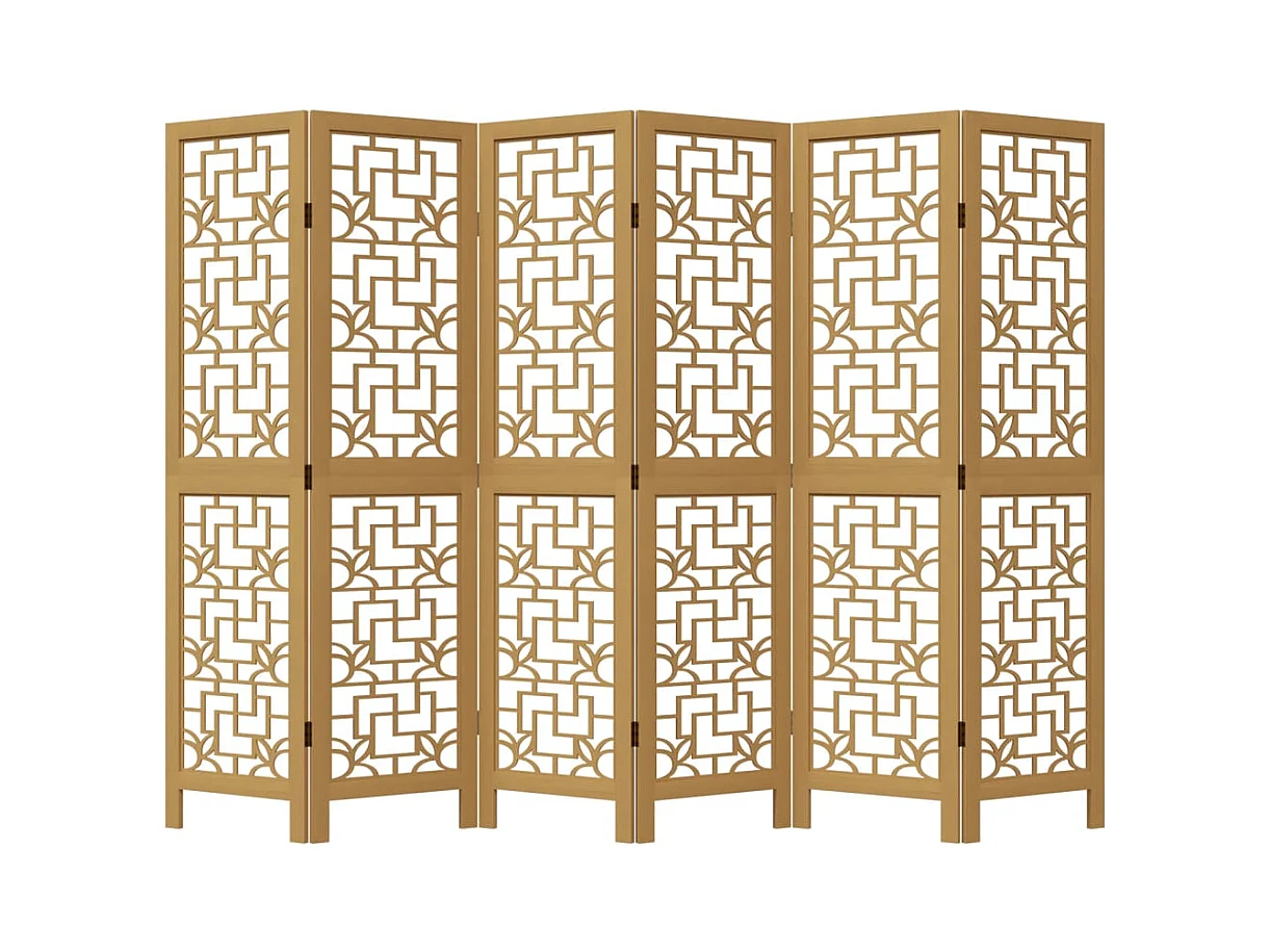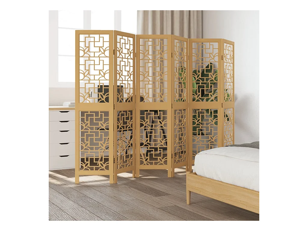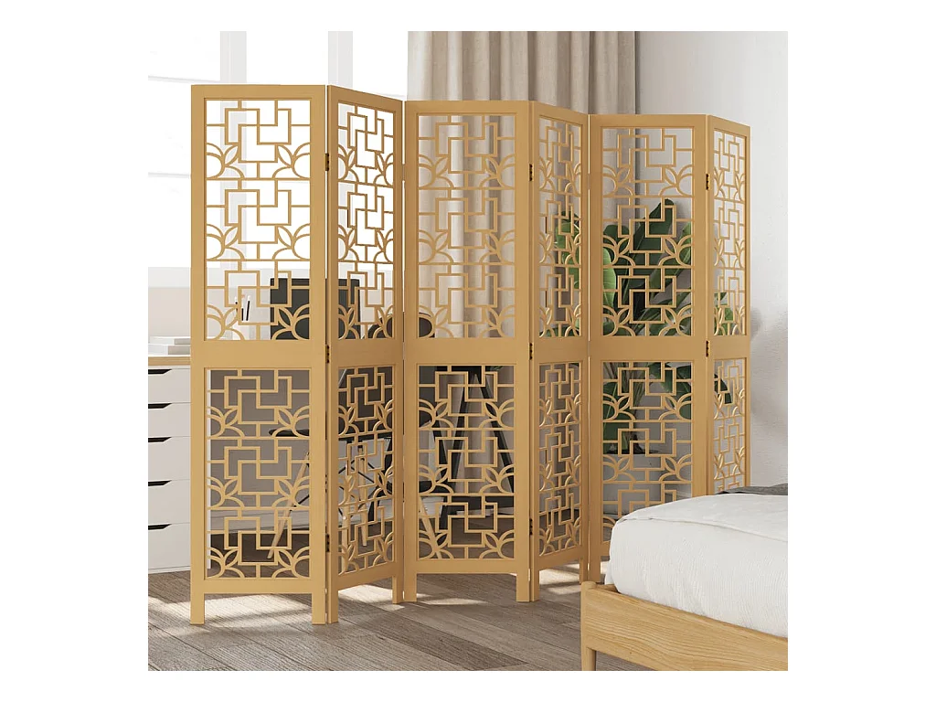 Tabique divisorio de 6 paneles en madera maciza de paulownia marrón