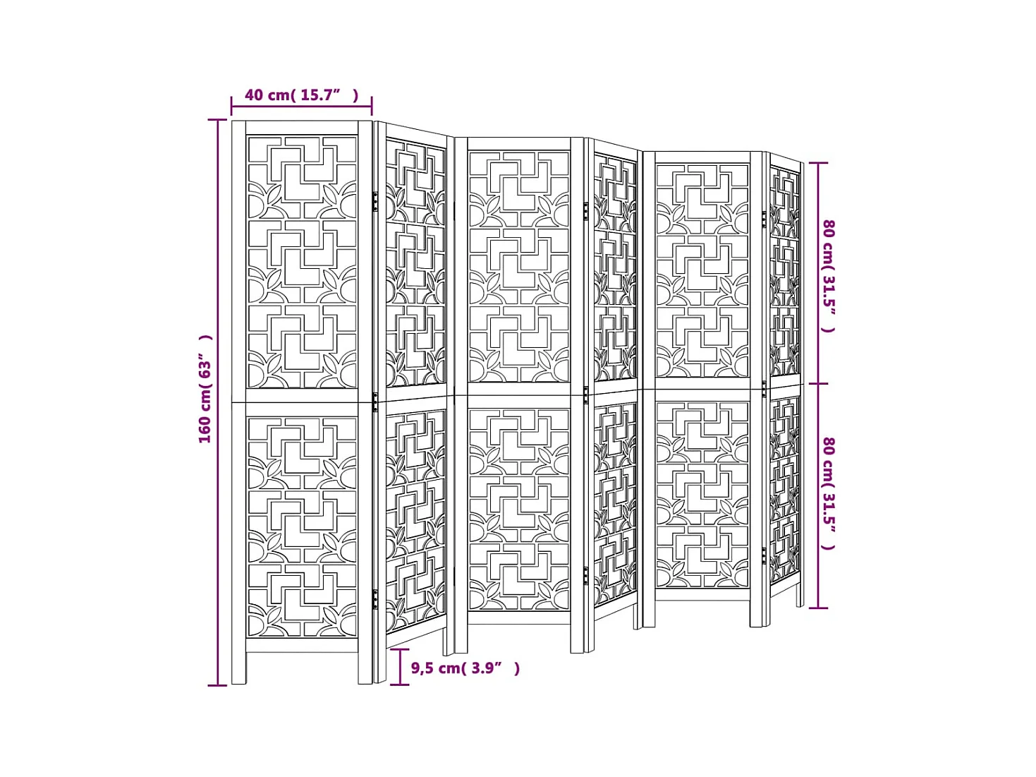Tabique divisorio de 5 paneles en marrón oscuro fabricado en paulownia maciza