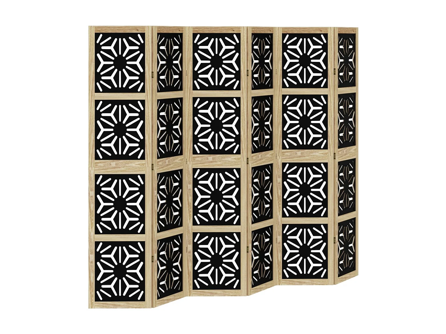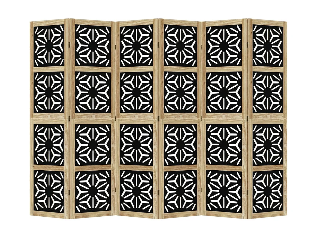 Tabique divisorio de 6 paneles en marrón y negro, paulownia maciza