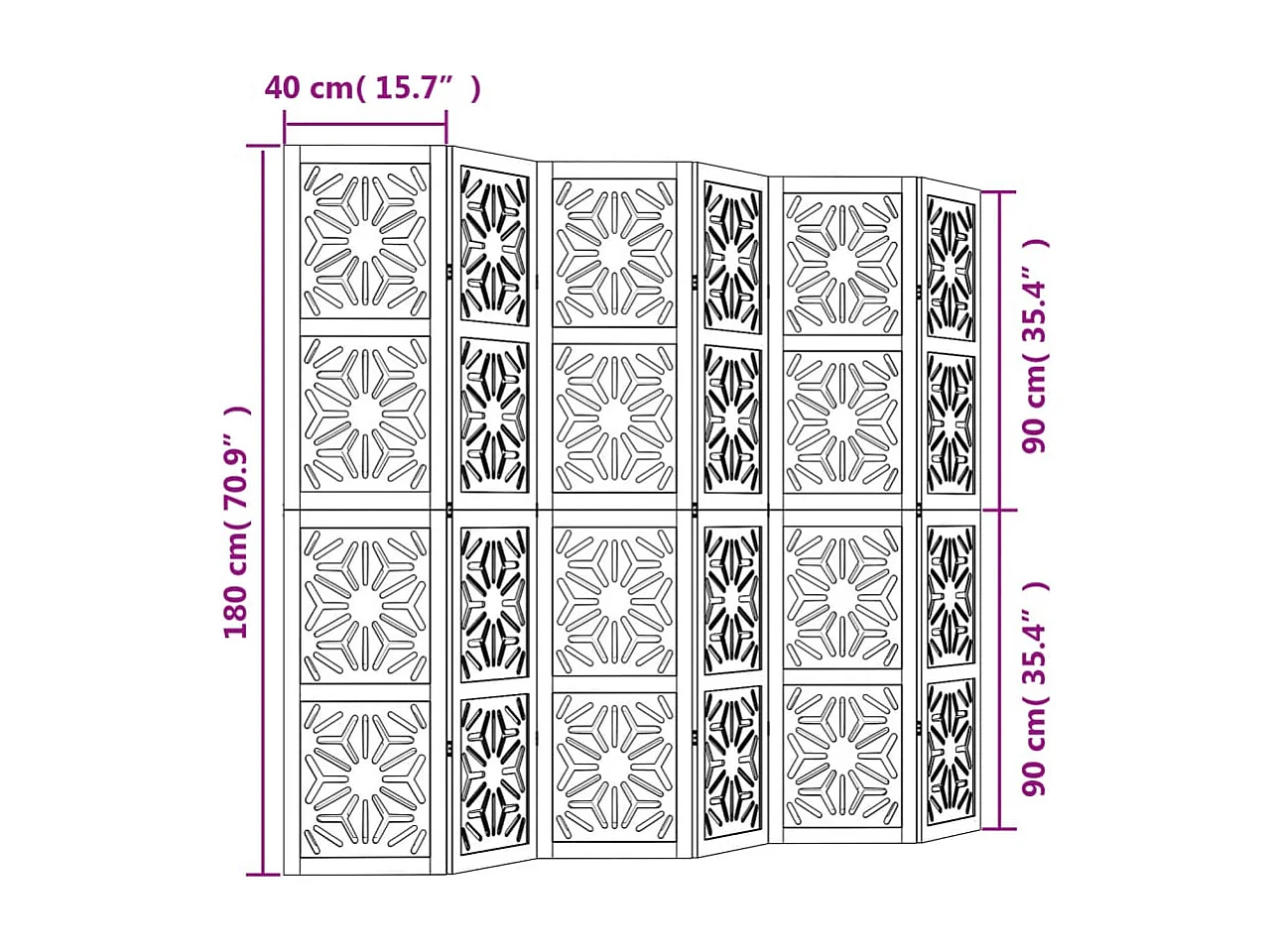Tabique divisorio de 6 paneles en color marrón oscuro fabricado en paulownia maciza