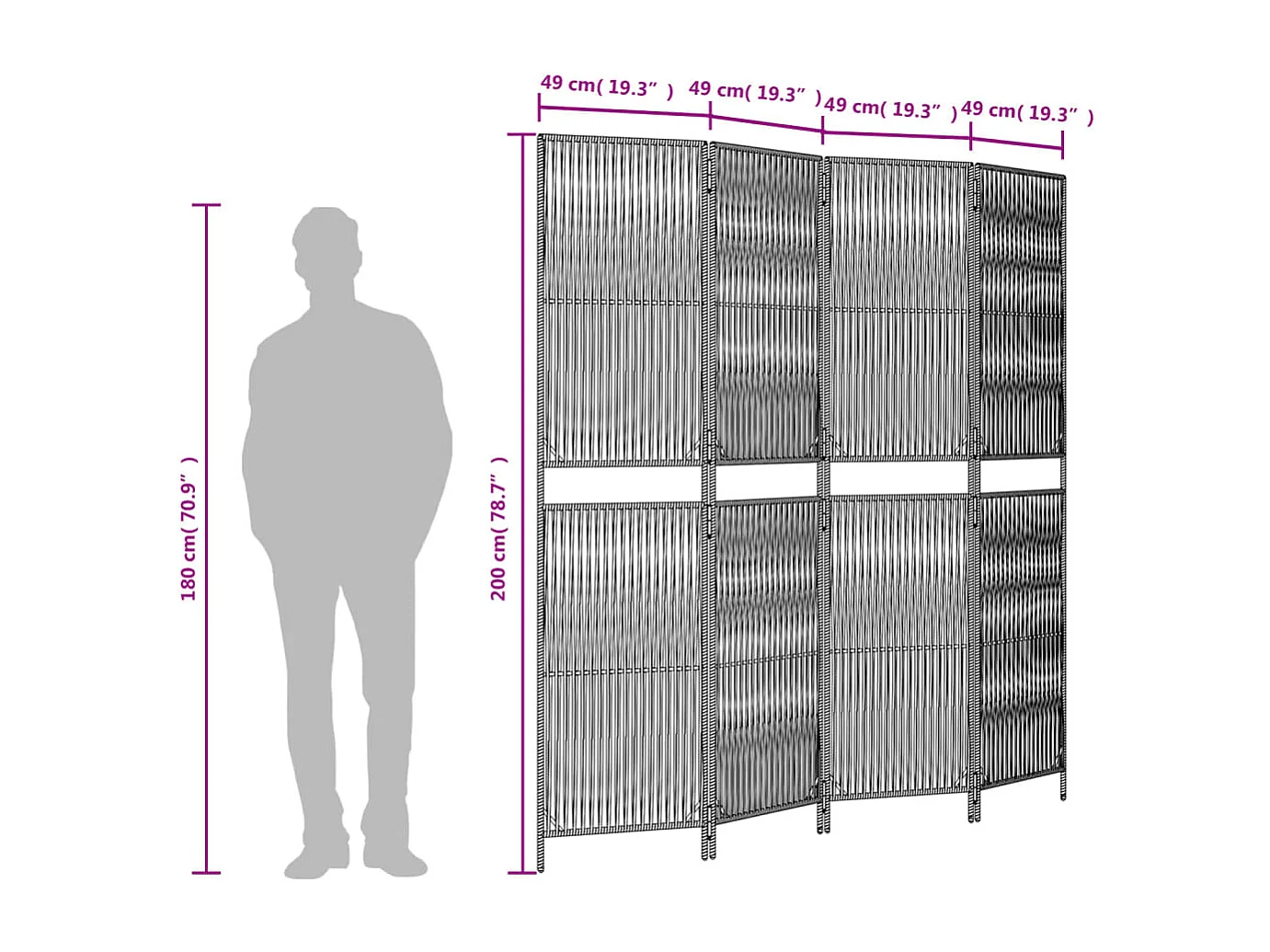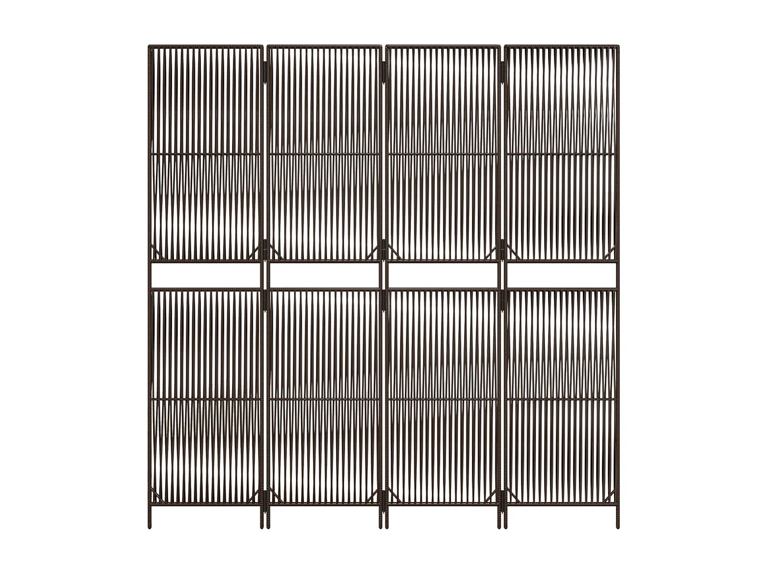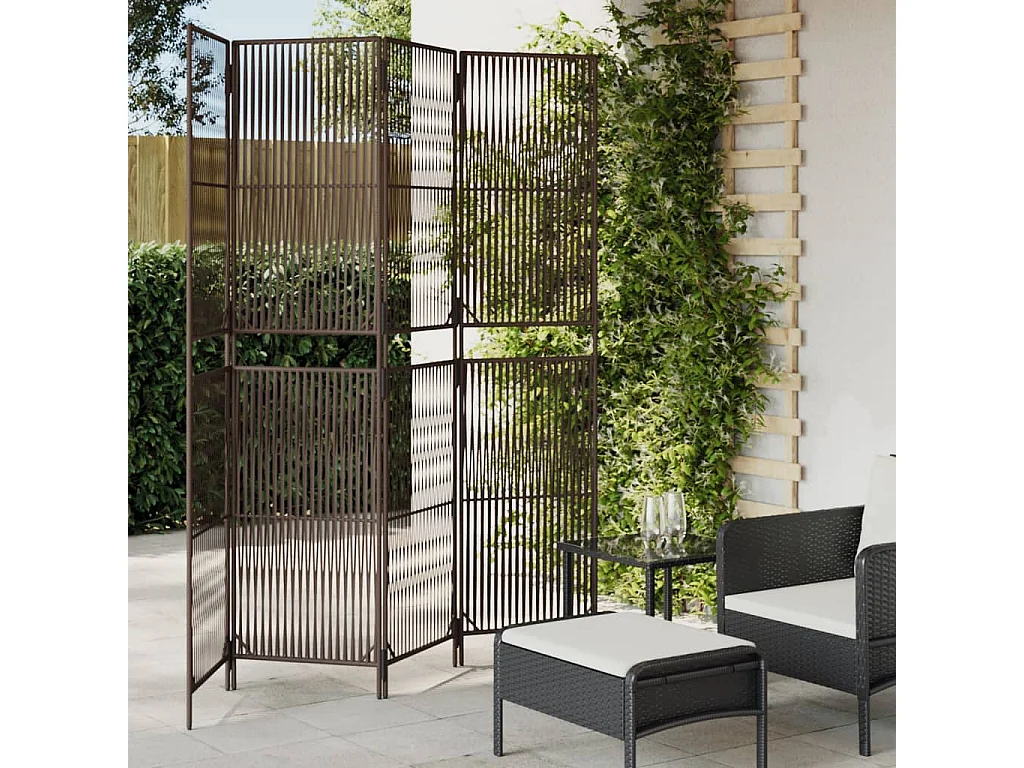 Tabique divisorio de mimbre de resina marrón de 4 paneles
