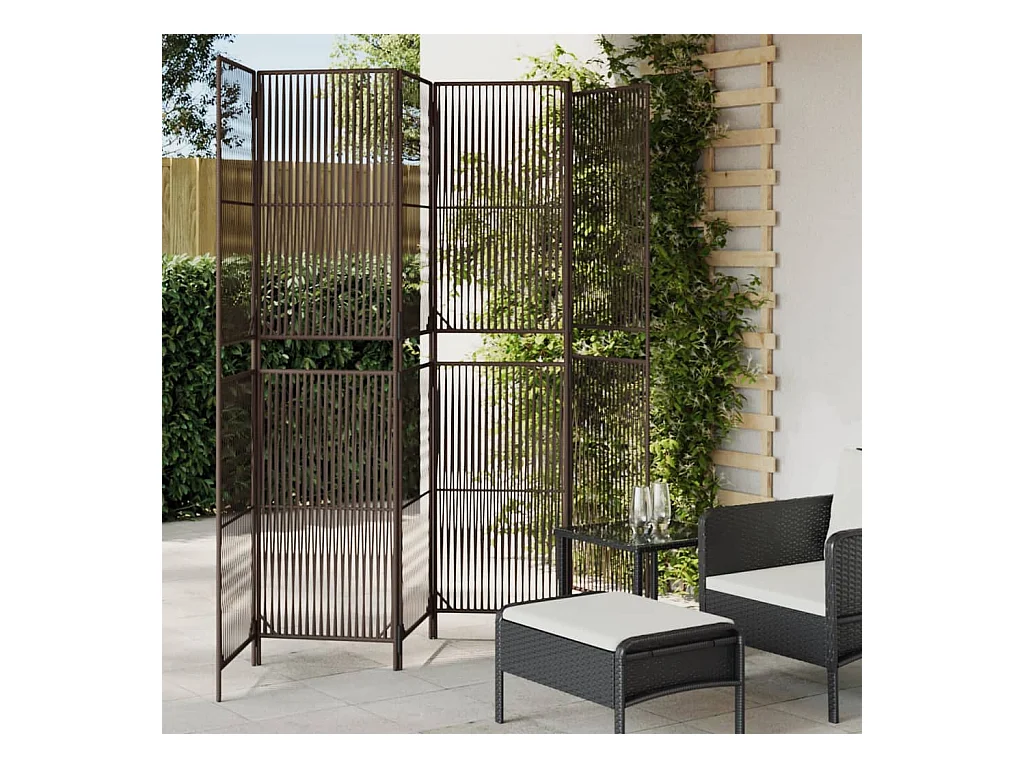 Tabique divisorio de mimbre de resina marrón de 4 paneles