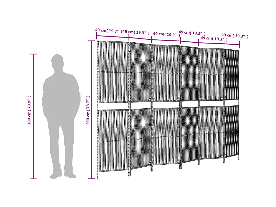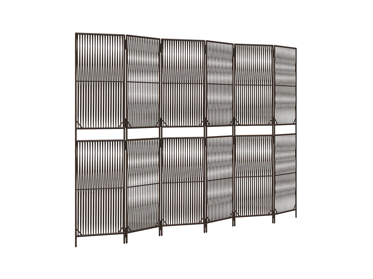Tabique divisorio de mimbre de resina marrón de 6 paneles