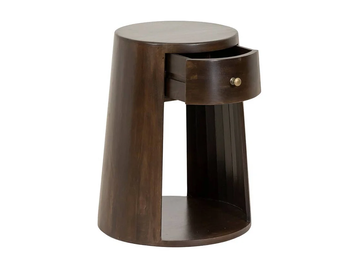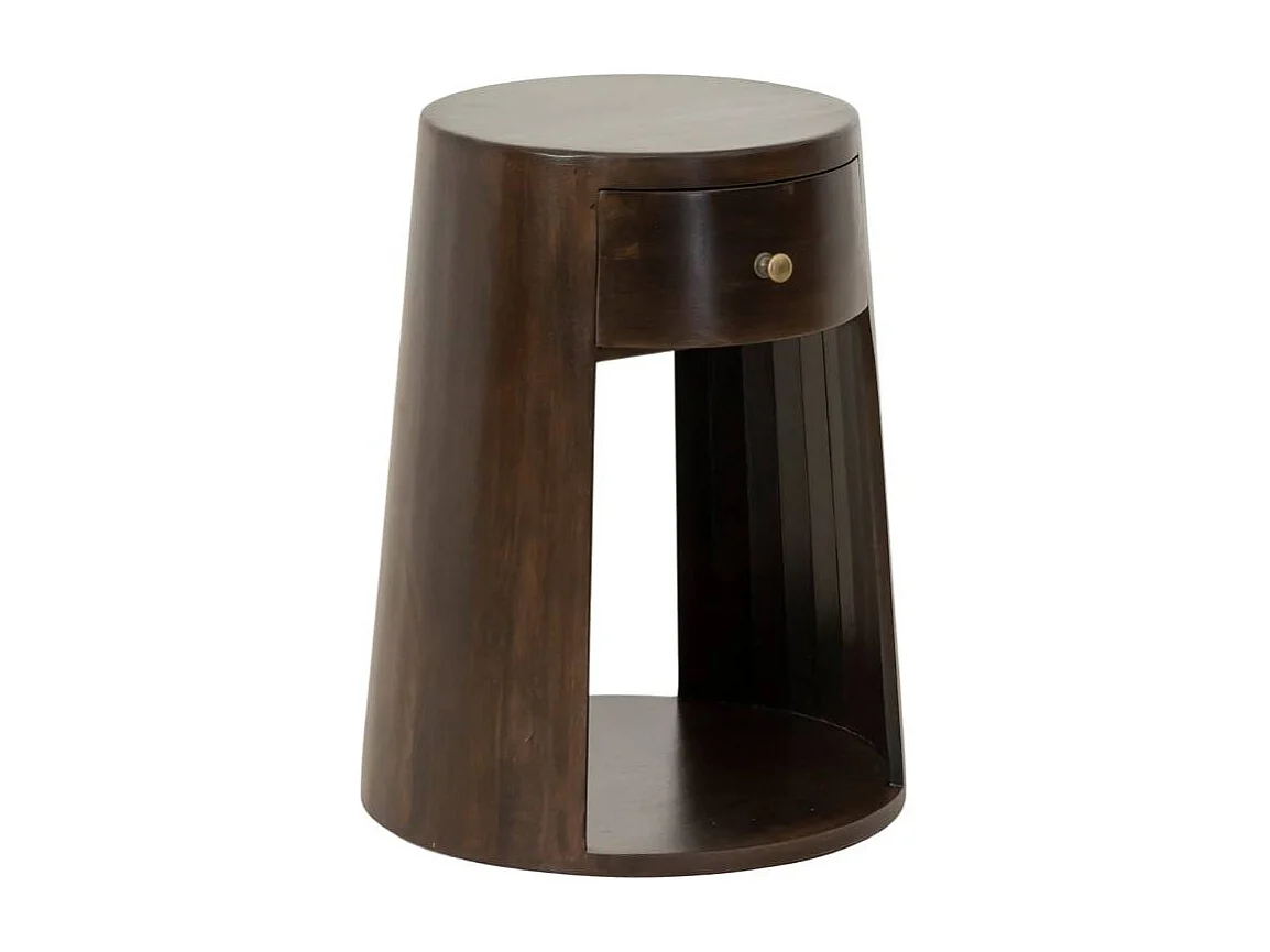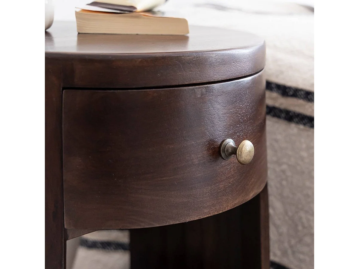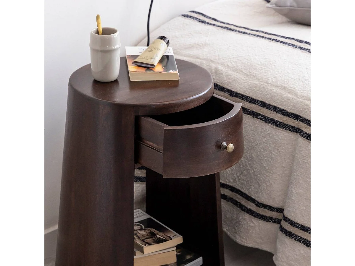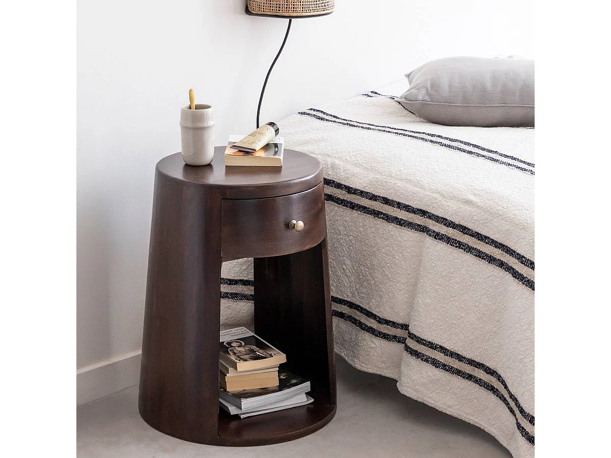 Mesita de noche redonda de madera de mango Isao