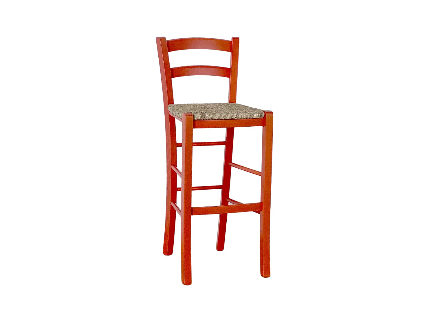 Taburete alto de madera de naranjo h 73 cm Rustico con asiento de polipiel roja
