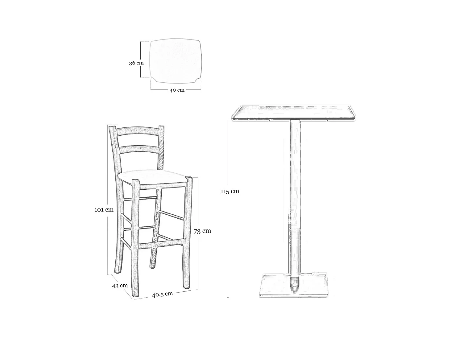 Taburete alto de madera de naranjo h 73 cm Rustic con asiento de polipiel antracita