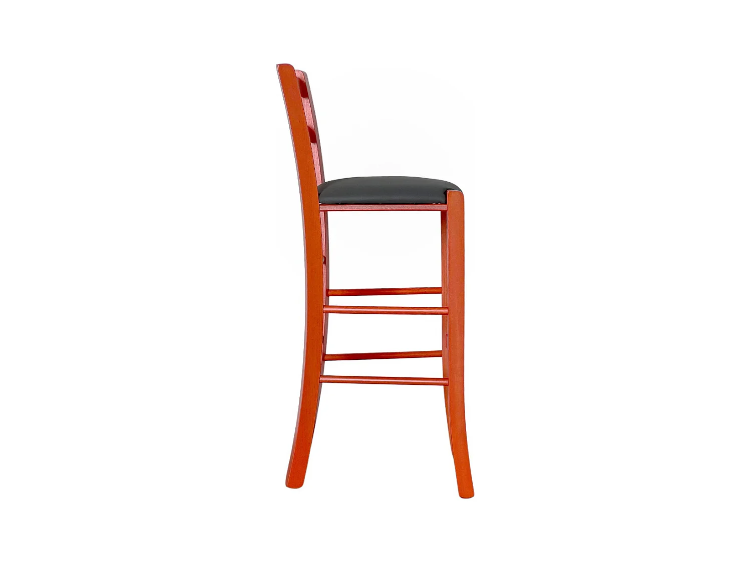 Taburete alto de madera de naranjo h 73 cm Rustico con asiento de polipiel roja