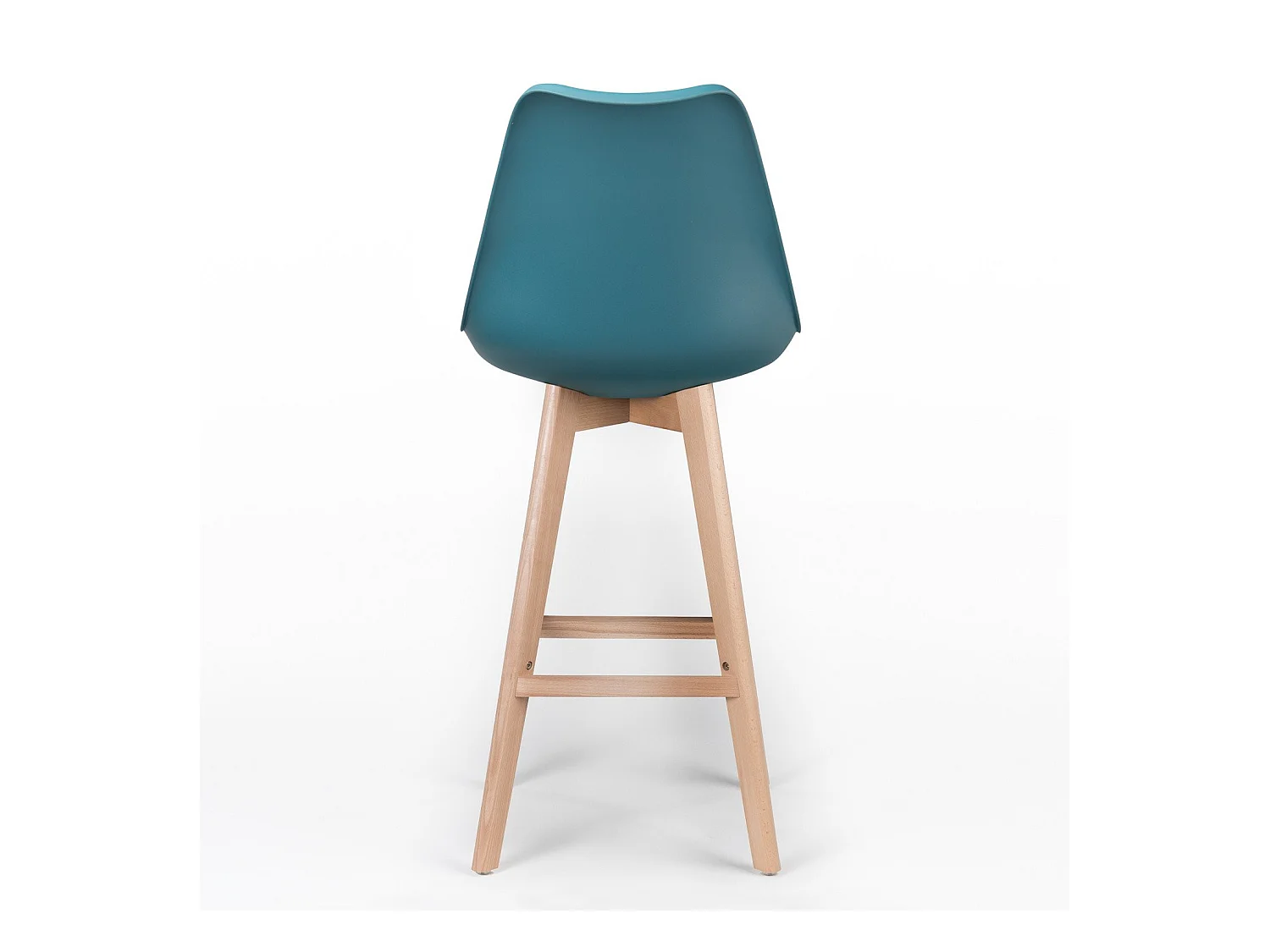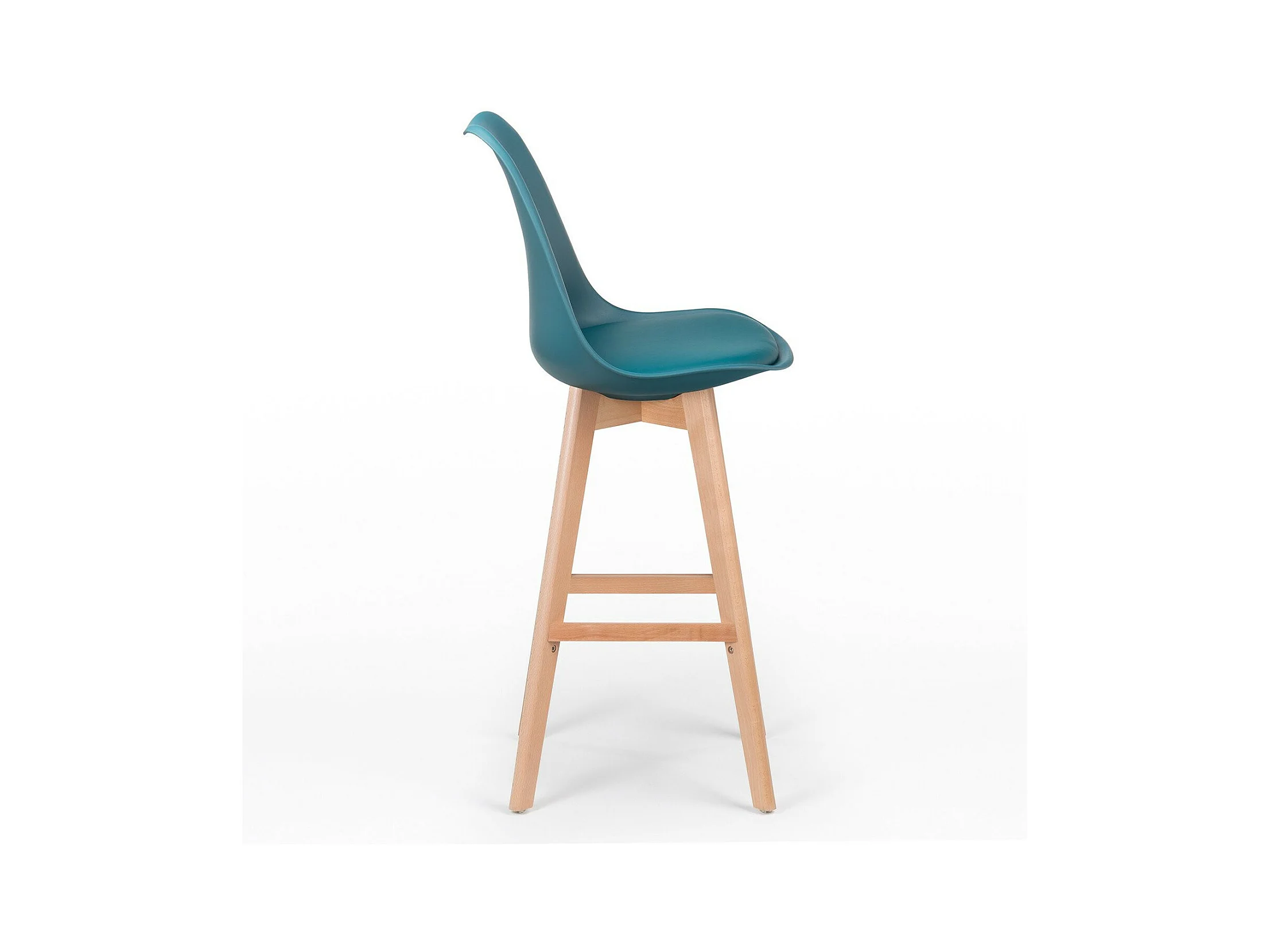 Taburete nórdico con cojín polipiel azul pato y patas de haya clara Tula 67 cm