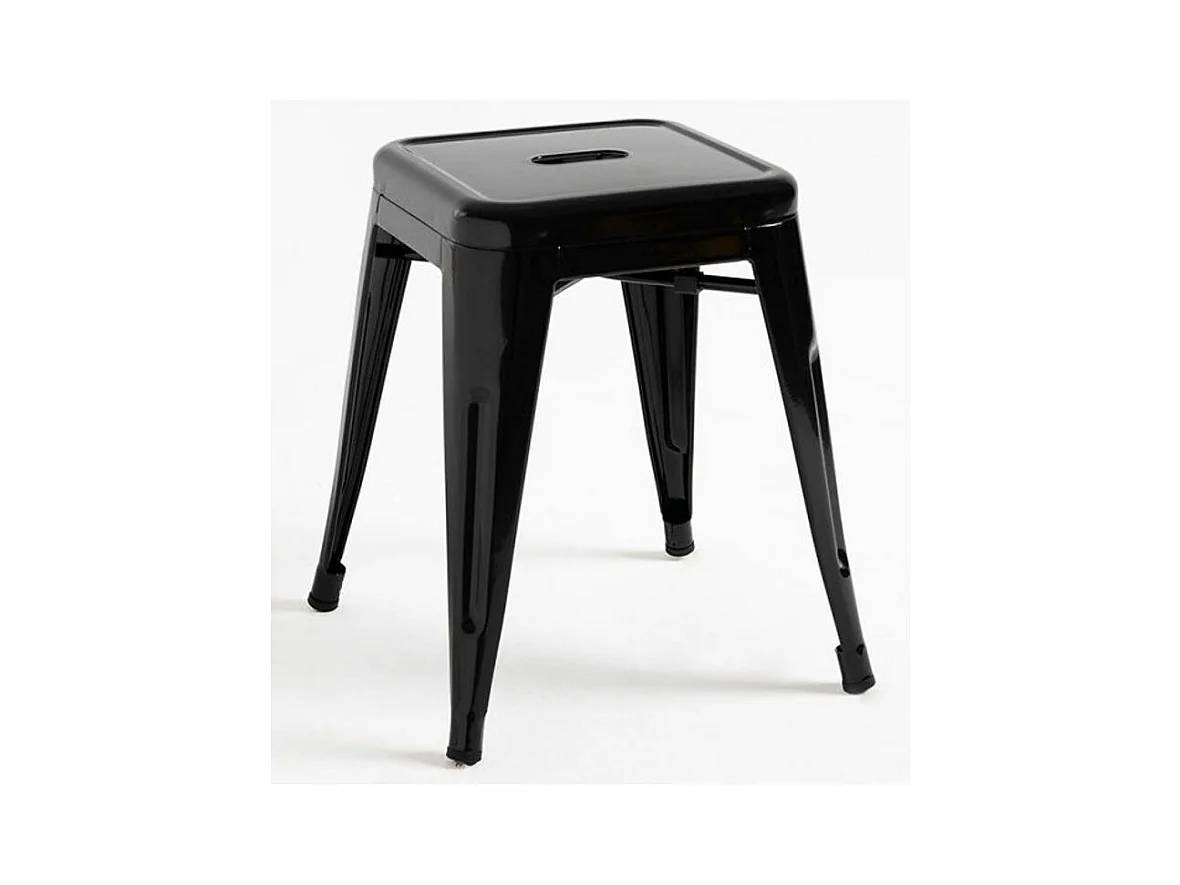 Taburete bajo Barka, acero plateado brillante, 45 cm-Color Negro
