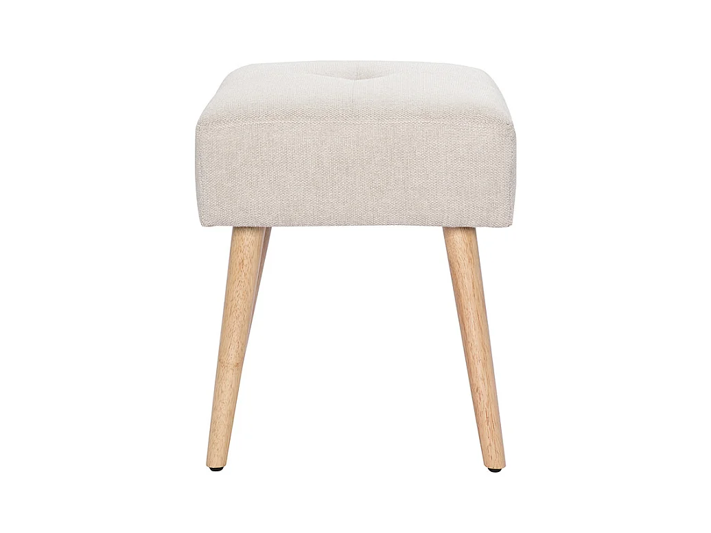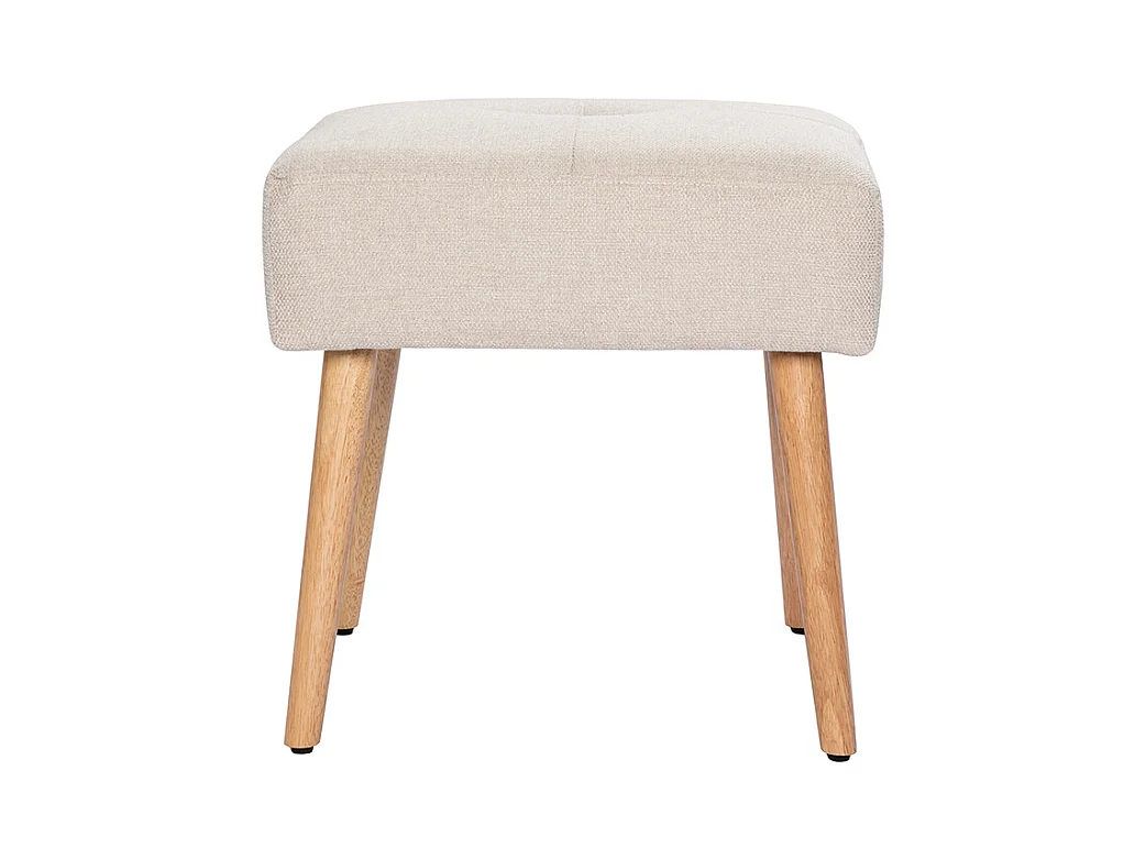 Taburete bajo de tela efecto aterciopelado texturizado beige y madera clara maciza 46 cm GUESTA