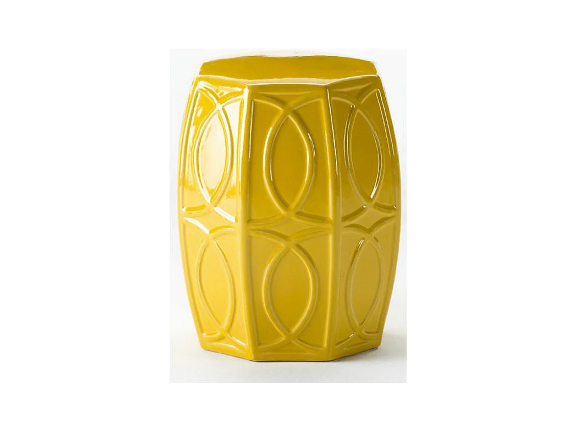 Taburete mesita auxiliar de cerámica amarillo y blanco