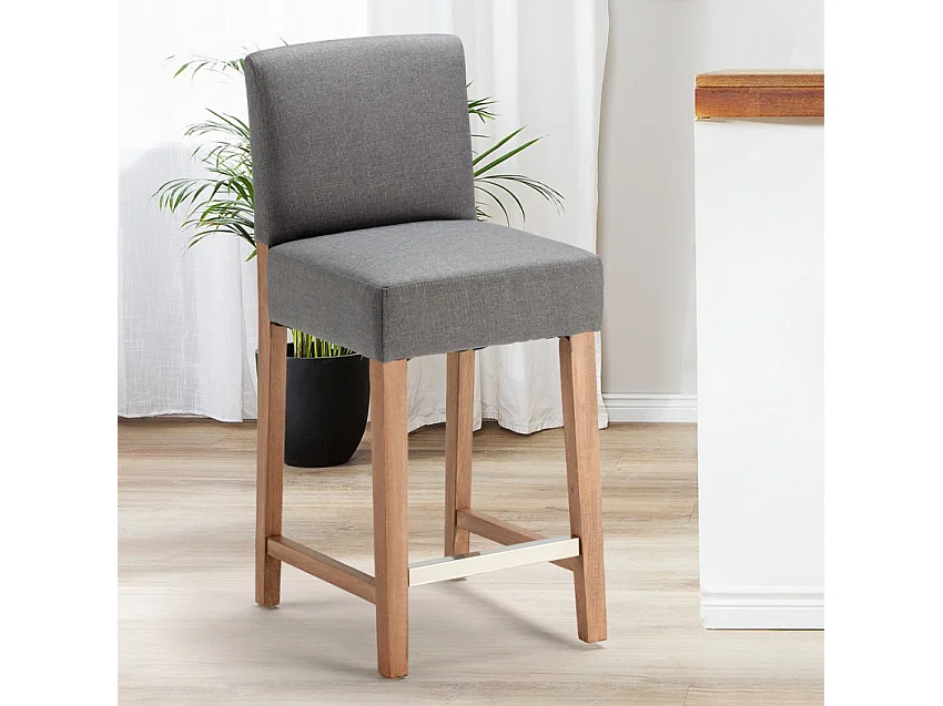 Taburete alto de bar cocina estilo nórdico en tela con respaldo Shona - Gris claro