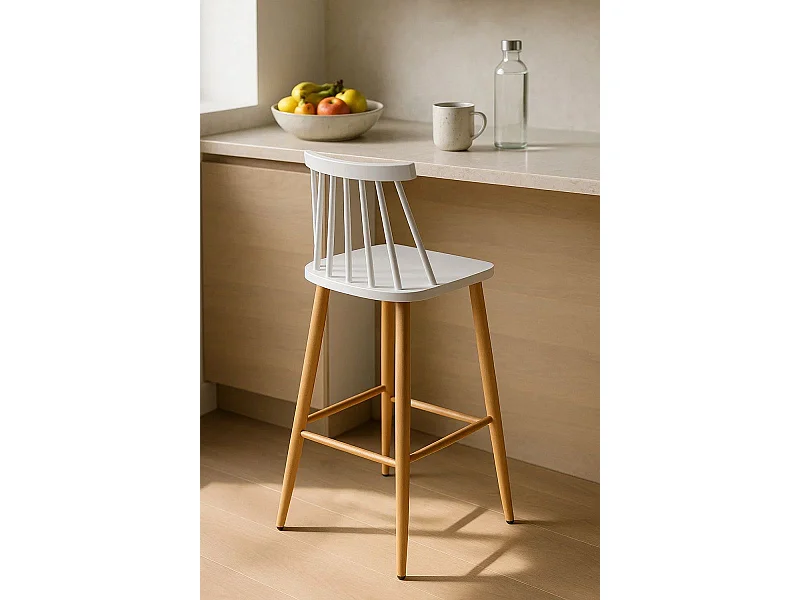 Set de 2 taburetes de cocina de diseño tela efecto borreguillo y metal negro ROSALIE