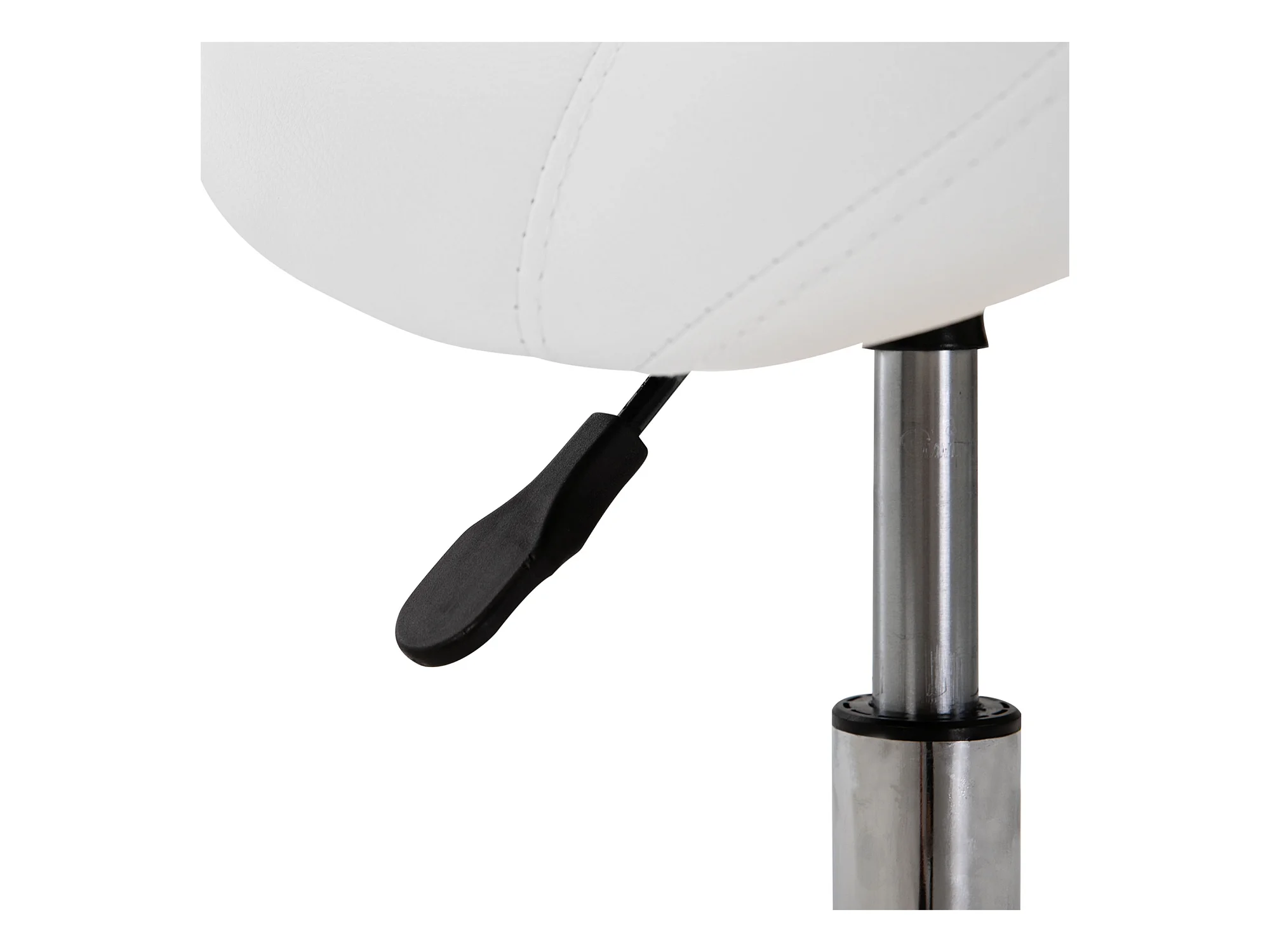 Taburete de trabajo giratorio, altura regulable, PU blanco y negro, acero cromado (56x71x78-90cm)