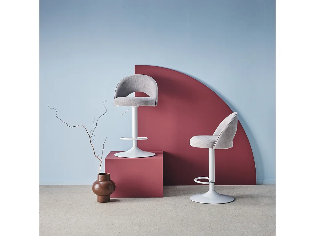 Taburete de bar ajustable de metal y tela con base blanca, set de 2