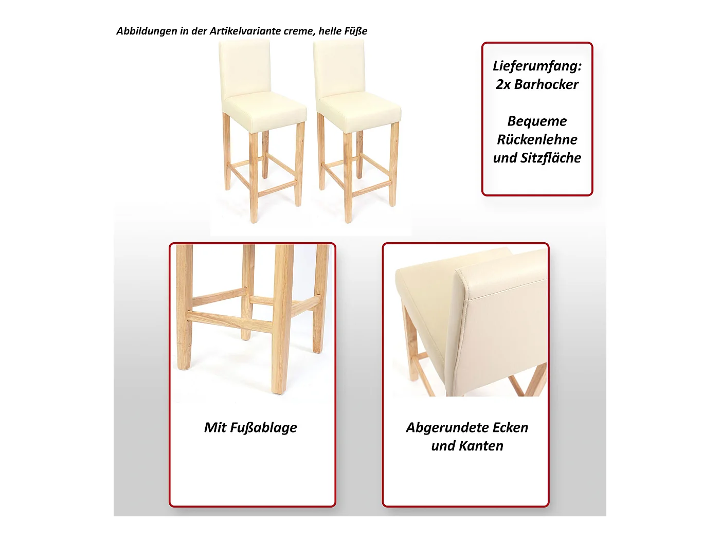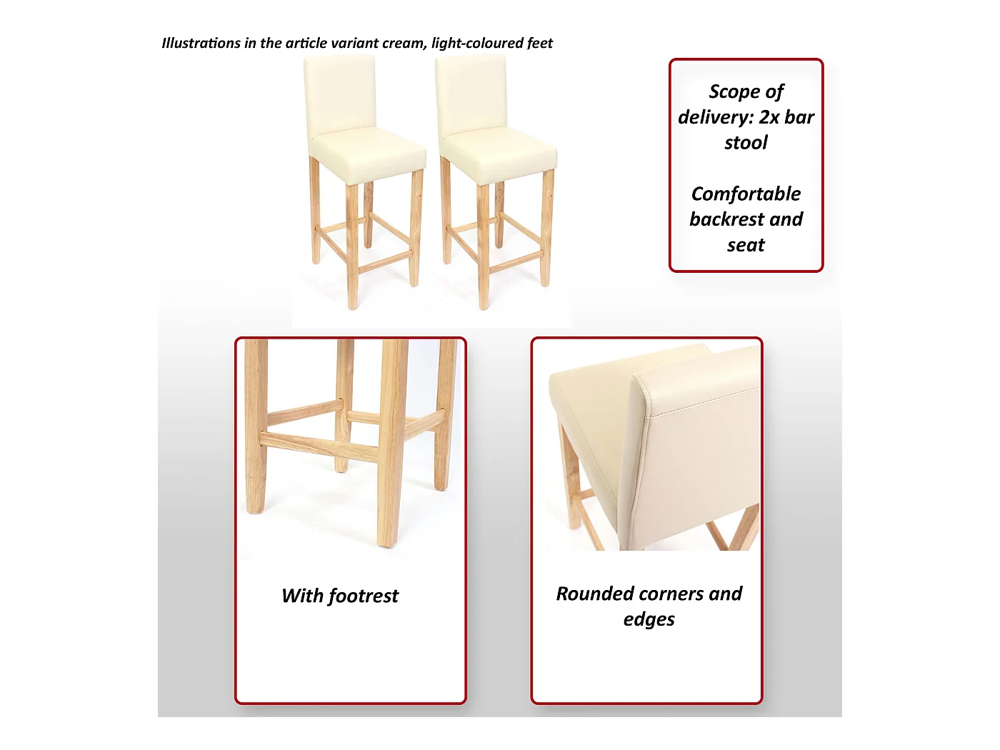 Taburete de bar MCW-A67 (set de 2), crema-beige, imitación cuero